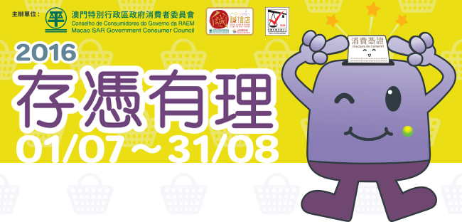 A actividade “Guarde Facturas na Compra! 2016” organizada pelo Conselho de Consumidores (CC) terminará em 31 de Agosto, até ao qual os consumidores podem fazer inscrição no sorteio desde que tenham qualquer comprovativo de compra, no valor não inferior a 50 patacas, emitido por uma Loja Certificada durante o mesmo período.