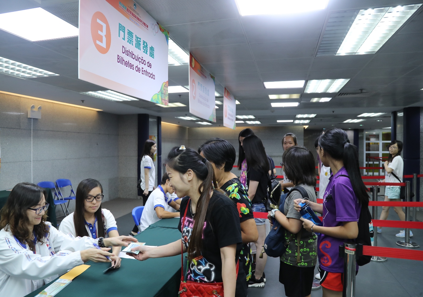 A distribuição gratuita dos bilhetes para o “Intercâmbio Desportivo e Recreativo entre os Atletas Olímpicos Nacionais de Elite e os Jovens de Macau”, terá lugar no dia 26 de Agosto, a partir das 10:00h, no Pavilhão Polidesportivo Tap Seac. Os portadores de documento de identificação válido e emitido pela entidade competente da RAEM poderão adquirir no máximo de 2 bilhetes. Não havará marcação de lugares nos ingressos e de acordo com a orderm de distribuição do bilhetes aos interressados.