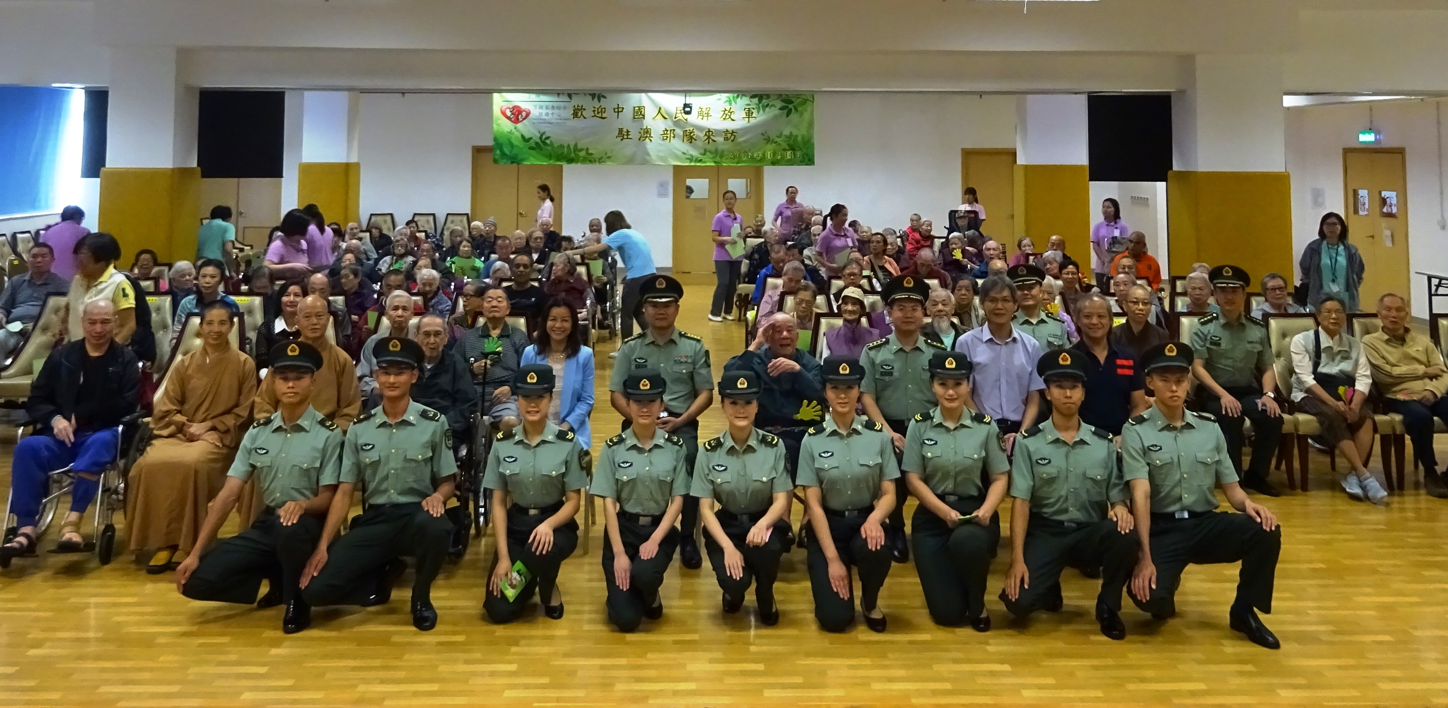 No dia 14 de Outubro, à tarde, o subchefe do Estado-Maior, coronel Gao Zhijun, e mais 19 militares, acompanhados pela presidente do Instituto de Acção Social (IAS), Vong Yim Mui, e alguns dos seus trabalhadores, visitaram o Complexo dos Serviços de Apoio ao Cidadão Sénior para apresentarem cumprimentos aos seus utentes.
