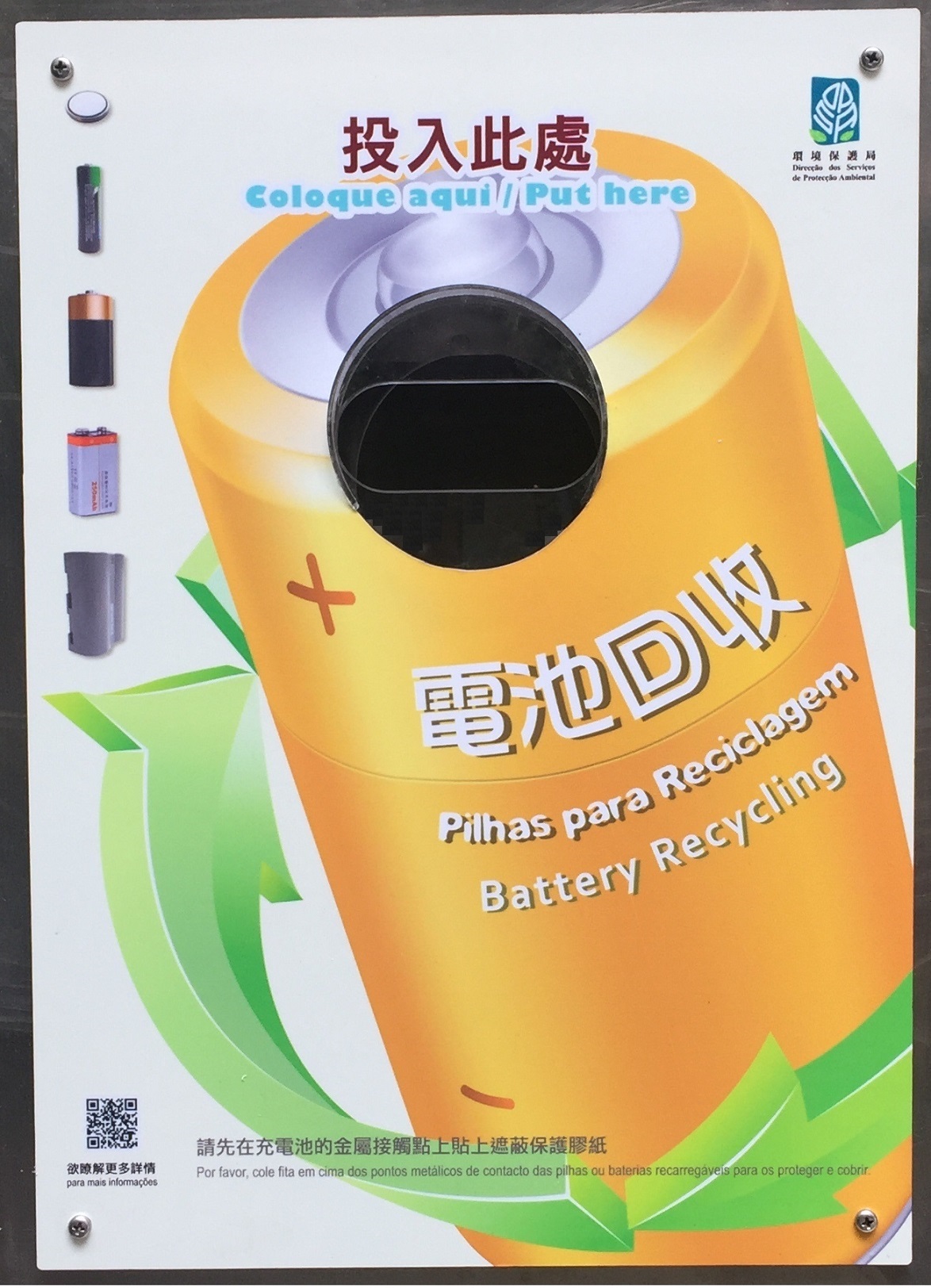 A Direcção dos Serviços de Protecção Ambiental (DSPA) já começou os trabalhos de instalação de postos de recolha de pilhas e baterias usadas, estimando que, este ano, serão instalados postos de recolha em 50 depósitos públicos de contentores de lixo, tendo actualmente já sido instalados postos de recolha num total de 6 depósitos públicos, situados na Península de Macau e na Taipa, sendo os restantes 44 postos de recolha abertos ao público ainda este mês, a fim de facilitar a recolha selectiva de pilhas e baterias usadas por parte dos cidadãos. Em 2017, a DSPA irá continuar a instalar mais postos de recolha nos postos de atendimento dos serviços públicos, nos supermercados, nas lojas de conveniência, empresas de telecomunicações, bancos, entre outros estabelecimentos comerciais, para alargar ainda mais a rede de recolha.