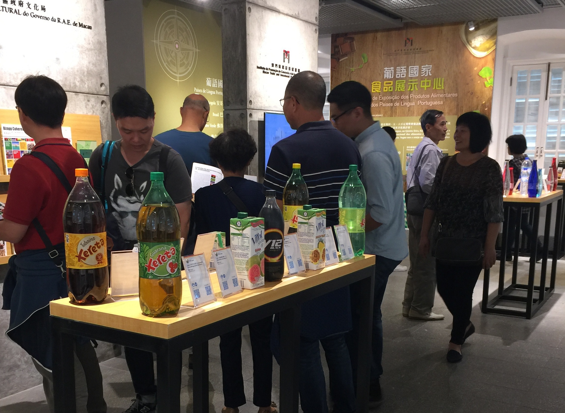 A Exposição Especial dos Produtos Alimentares dos Países de Língua Portuguesa apresenta diversos tipos de vinhos, alimentos enlatados, alimentos processados, temperos, café, chá, lacticínios, sumos e outros produtos alimentares especialmente seleccionados de Angola, Brasil, Cabo Verde, Guiné-Bissau, Moçambique, Portugal e Timor-Leste. Desde 18 de Outubro de 2016 até à data, a exposição já recebeu mais de 8.000 visitantes provenientes sobretudo da China Continental, Europa, América, Japão, Coreia do Sul, do Sudeste Asiático e das regiões de Taiwan, Hong Kong e Macau. Vários visitantes mostraram grande interesse nos produtos dos Países de Língua Portuguesa, nomeadamente pelos vinhos e outras bebidas, peixe enlatado e chocolate, entre outros, havendo ainda quem procurasse os funcionários no local para compreender os métodos de cozinhar e modos de adquirir os produtos alimentares dos Países de Língua Portuguesa. Assim, foi recomendada pelos funcionários a participação nas actividades de promoção de vendas todas as Quintas, Sextas e Sábados até 30 de Junho de 2017, no Centro de Exposição dos Produtos Alimentares dos Países de Língua Portuguesa (sito na secção R1 no Centro Comercial da Praça do Tap Seac, comummente designado por “Casa de Vidro”). Do mesmo modo, o Centro de Exposição lançou também o guia inteligente para promover os produtos alimentares dos Países de Língua Portuguesa, podendo os utilizadores ter acesso através do telemóvel a informações sobre locais de venda por grosso e a retalho de produtos alimentares e de lembranças dos Países de Língua Portuguesa, e ainda restaurantes típicos nas proximidades.