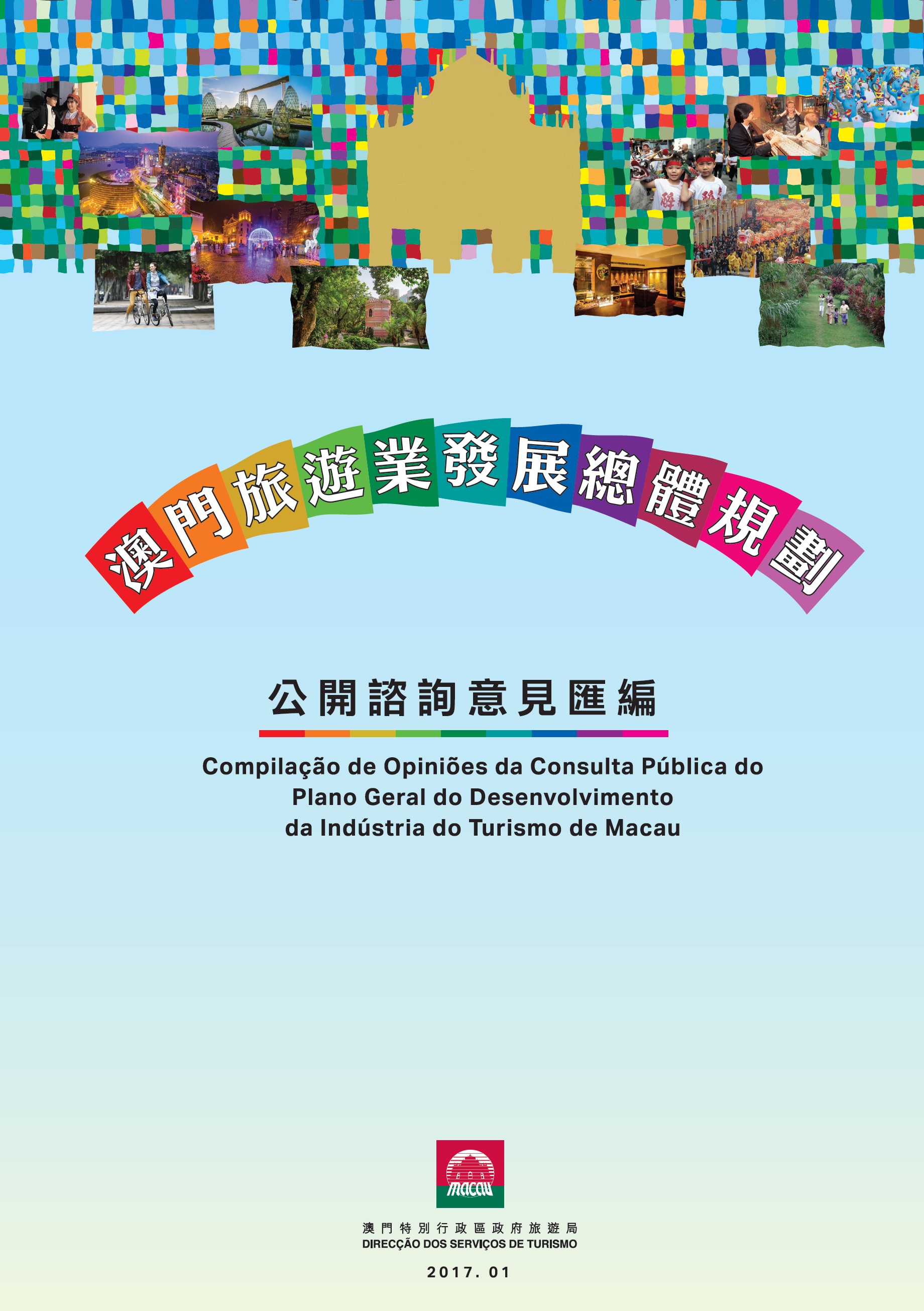 A Direcção dos Serviços de Turismo (DST) realizou no ano passado uma consulta pública sobre o Plano Geral do Desenvolvimento da Indústria do Turismo de Macau (Plano Geral) por um período de dois meses, tendo entretanto concluído os trabalhos de organização e análise das opiniões recolhidas. A Compilação de Opiniões da Consulta Pública do Plano Geral do Desenvolvimento da Indústria do Turismo de Macau é agora divulgada pela DST, para referência dos diversos sectores da sociedade, e para dar a conhecer as diferentes opiniões recolhidas e o resultado da análise desta consulta.
