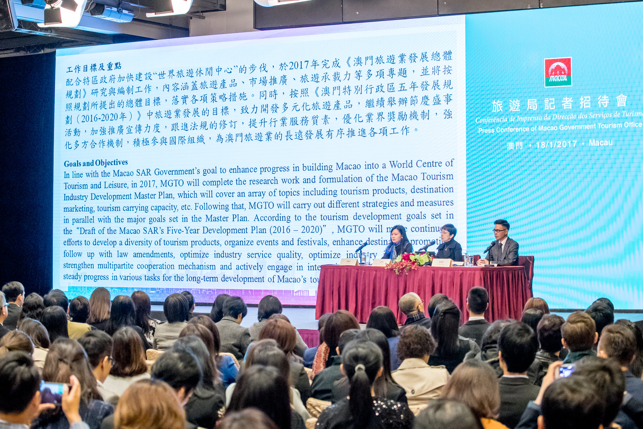 A Conferência Anual de Imprensa da Direcção dos Serviços de Turismo (DST) decorreu hoje (dia 18). Na ocasião, a DST anunciou que Macau recebeu em 2016 mais de 30 milhões de visitantes, registando um ligeiro aumento anual de 0,8 por cento. Apesar do ligeiro crescimento do número de visitantes para o ano inteiro, pela primeira vez em dez anos, no ano passado, o número de visitantes que pernoitaram na cidade foi superior ao dos visitantes que não pernoitaram, num aumento de perto de 10 por cento. Para este ano, a DST pretende concluir a elaboração do Plano Geral do Desenvolvimento da Indústria do Turismo de Macau, desenvolver e impulsionar vários trabalhos, bem como assegurar o desenvolvimento diversificado e sustentável da indústria turística, em sintonia com os objectivos para o desenvolvimento da indústria turística traçados pelo governo da RAEM no Plano Quinquenal de Desenvolvimento, e em apoio à transformação de Macau num Centro Mundial de Turismo e Lazer.