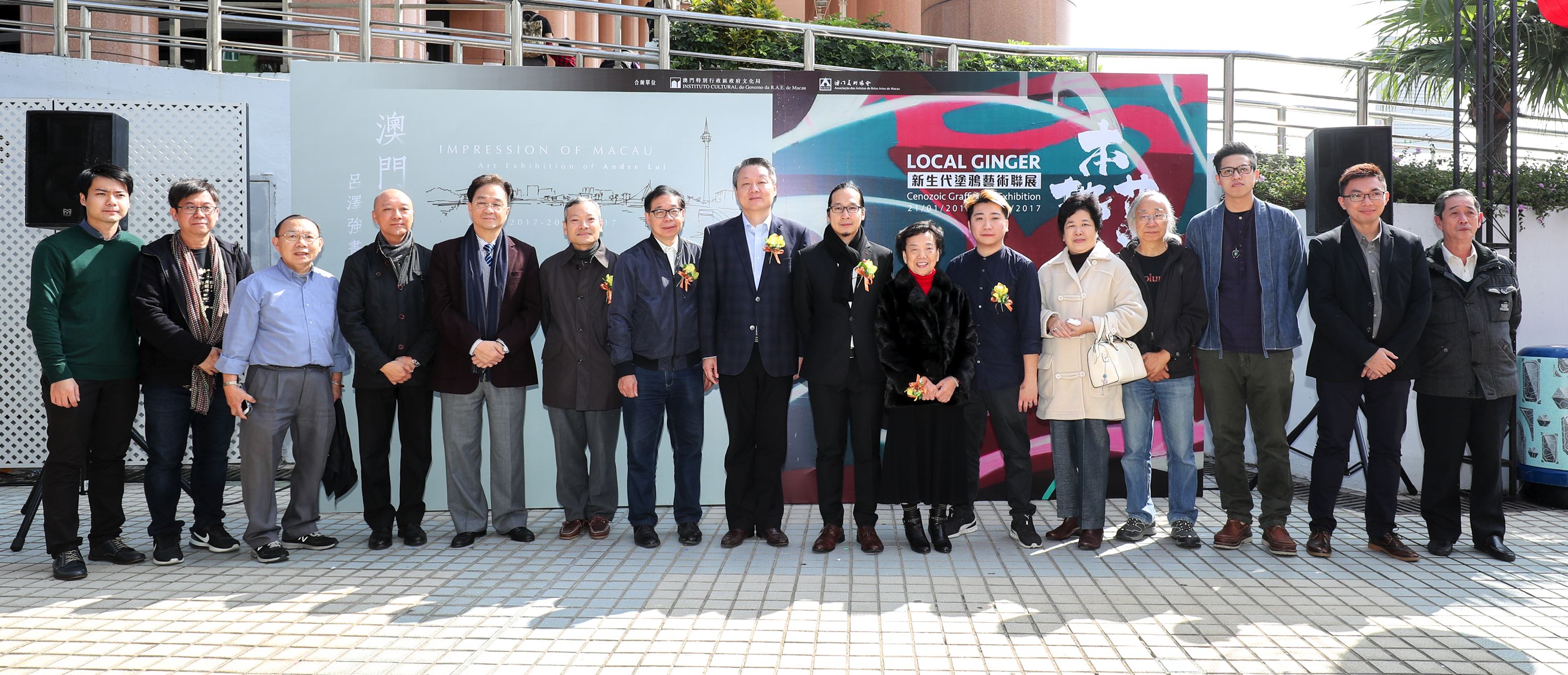 Co-organizada pelo Instituto Cultural e pela Associação dos Artistas de Belas-Artes de Macau, a cerimónia de inauguração das “Gengibre Local – Exposição Colectiva de Graffiti da Nova Geração” e “Impressão de Macau – Exposição de Pinturas do Artista Andre Lui” teve lugar no dia 21 de Janeiro (Sábado), pelas 12:00 horas, na Galeria Junto ao Lago no Anim’Arte NAM VAN.