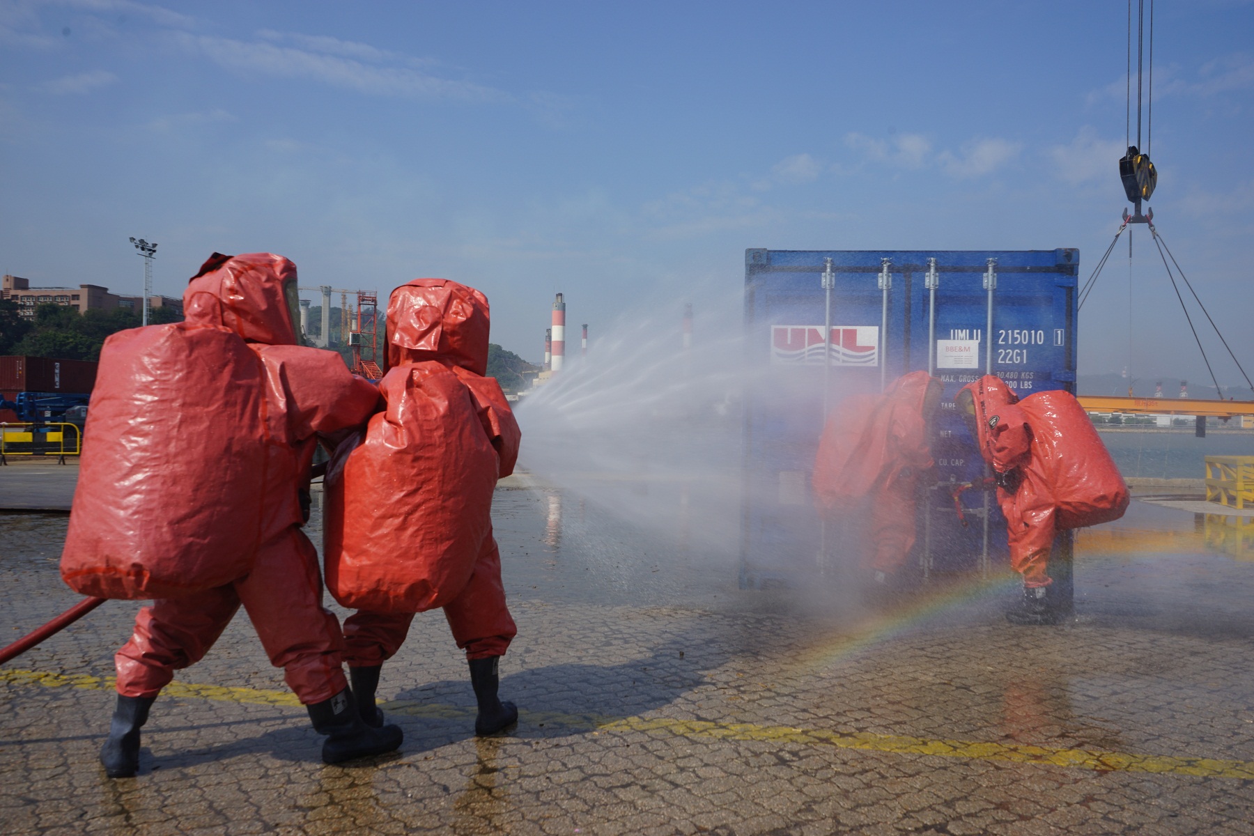 Com a finalidade de intensificar as medidas de contingência e reforçar a coordenação e comunicação do Cais de Contentores do Porto de Ká-Hó, o Corpo de Bombeiros (CB) realizou na parte da manhã de hoje (dia 23 de Janeiro de 2017), um exercício de incêndio e evacuação no Cais de Contentores do Porto de Ká-Hó, em colaboração com a Macauport Sociedade de Administração do Terminal de Contentores, Lda (MCT), a fim de testar a capacidade de resposta e coordenação e comunicação entre ambas as partes em situações de emergência.