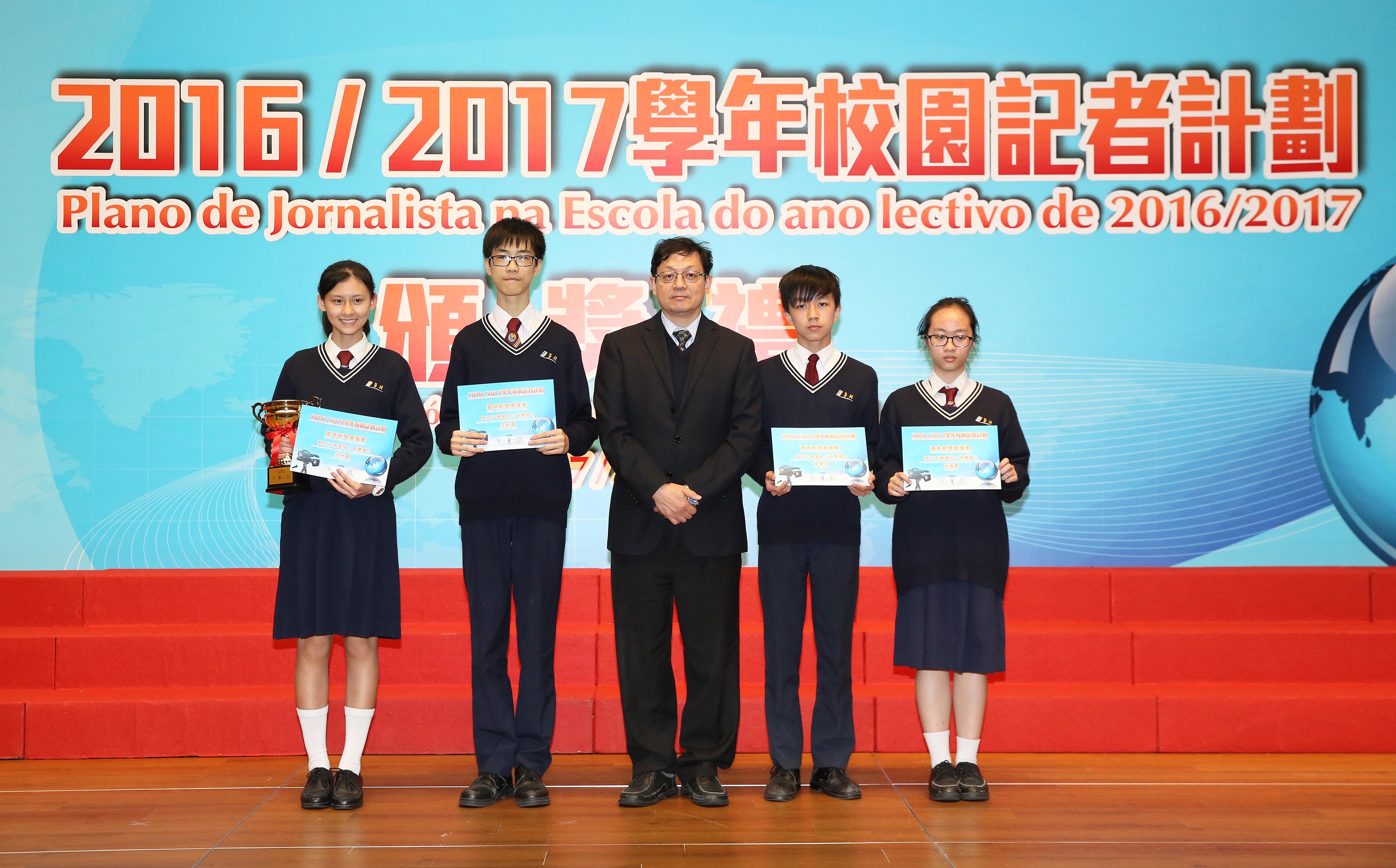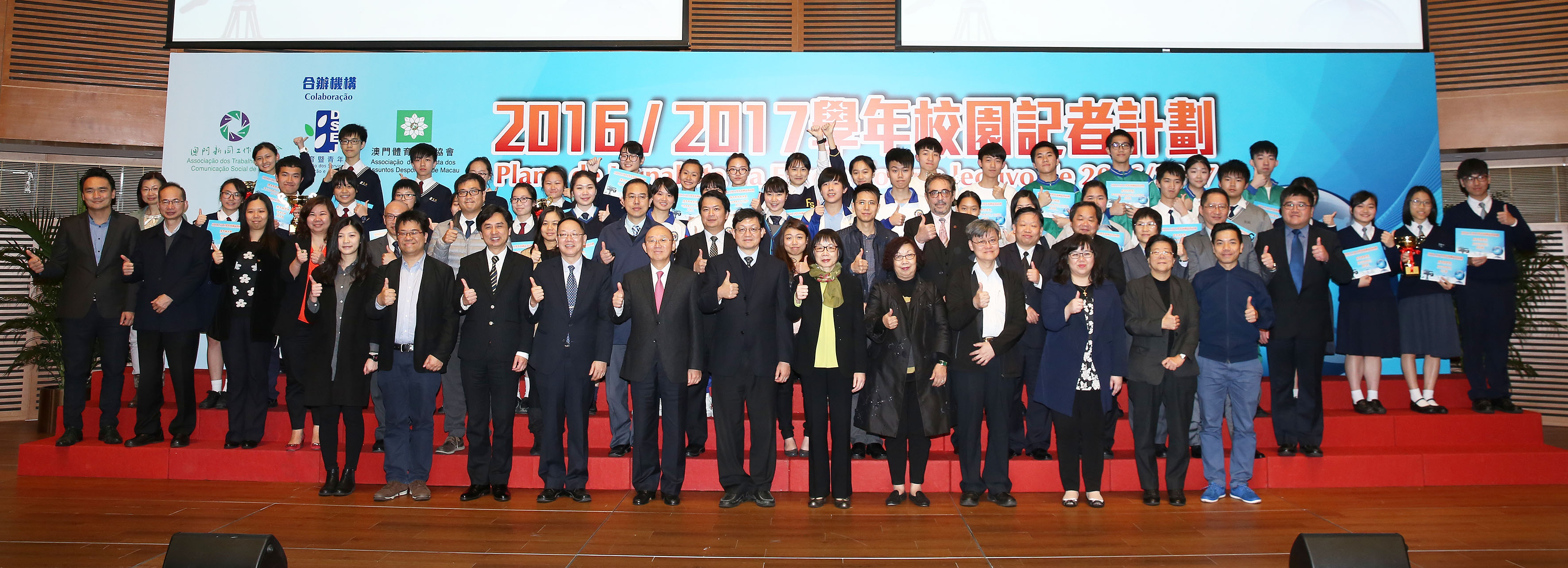 O “Plano de Jornalista de Escola” do ano lectivo de 2016/2017, organizado pela Direcção dos Serviços de Educação e Juventude (DSEJ), em conjunto com a Associação dos Trabalhadores da Comunicação Social de Macau e a Associação de Jornalistas dos Assuntos Desportivos de Macau, teve início em Novembro de 2016. Esta edição, sob o tema a “promoção do crescimento mental e físico, formação de boa capacidade de adaptação à comunidade”, abrangeu as áreas de jornais e revistas e de média electrónicos, e contou com a participação de 108 alunos oriundos de 20 escolas de Macau. Através da aprendizagem, formação, visitas e actividades práticas, foram seleccionadas pelo júri sete obras excelentes, cuja cerimónia de entrega de prémios realizou-se na tarde do dia 17 de Março de 2017, no Centro de Ciência de Macau, para celebrar os brilhantes resultados alcançados.