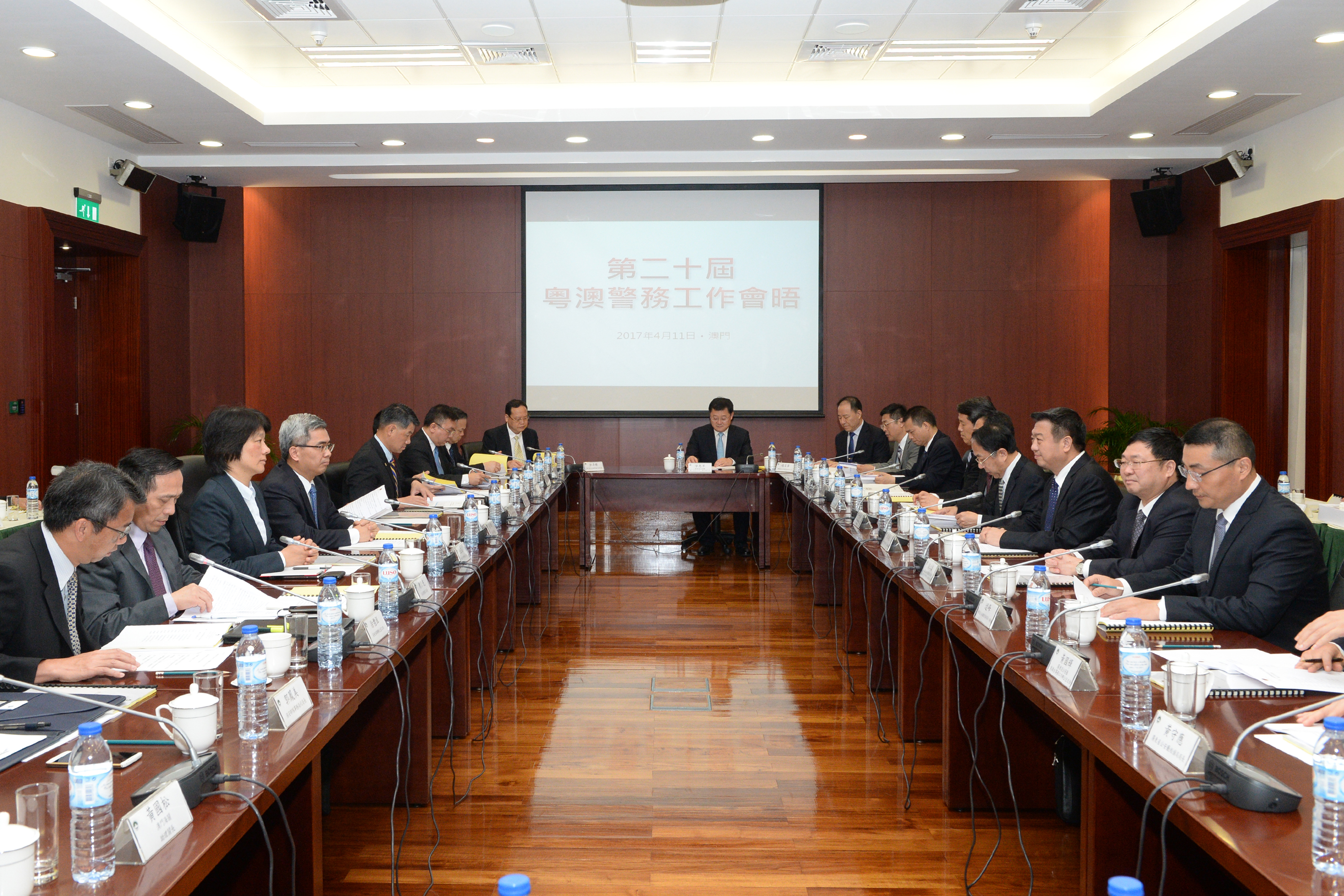 O 20.º Encontro de Trabalhos Policiais entre os Serviços de Segurança Pública da Província de Guangdong (SSPPG) e as Forças e Serviços de Segurança de Macau teve lugar no Gabinete do Secretário para a Segurança, no dia 11 do corrente mês. O Vice-governador da Província de Guangdong e Director da Directoria Providencial de Segurança Pública de Guangdong, Li Chunsheng, chefiou a sua delegação presente na reunião, a qual teve por objectivo passar em revista, juntamente com o Secretário para a Segurança, Wong Sio Chak, o resultado da cooperação policial entre ambas as partes do ano transacto, tendo discutido assuntos sobre a cooperação policial do ano 2017. Foram abordados, especialmente, temas relativos à prevenção e combate da imigração ilegal, ao incremento da cooperação quanto ao combate ao terrorismo, ao reforço da cooperação no combate aos crimes transfronteiriços, bem como, além de outro, foi, ainda abordado o aperfeiçoamento da gestão conjunta das águas marítimas e dos postos fronteiriços, entre outros.