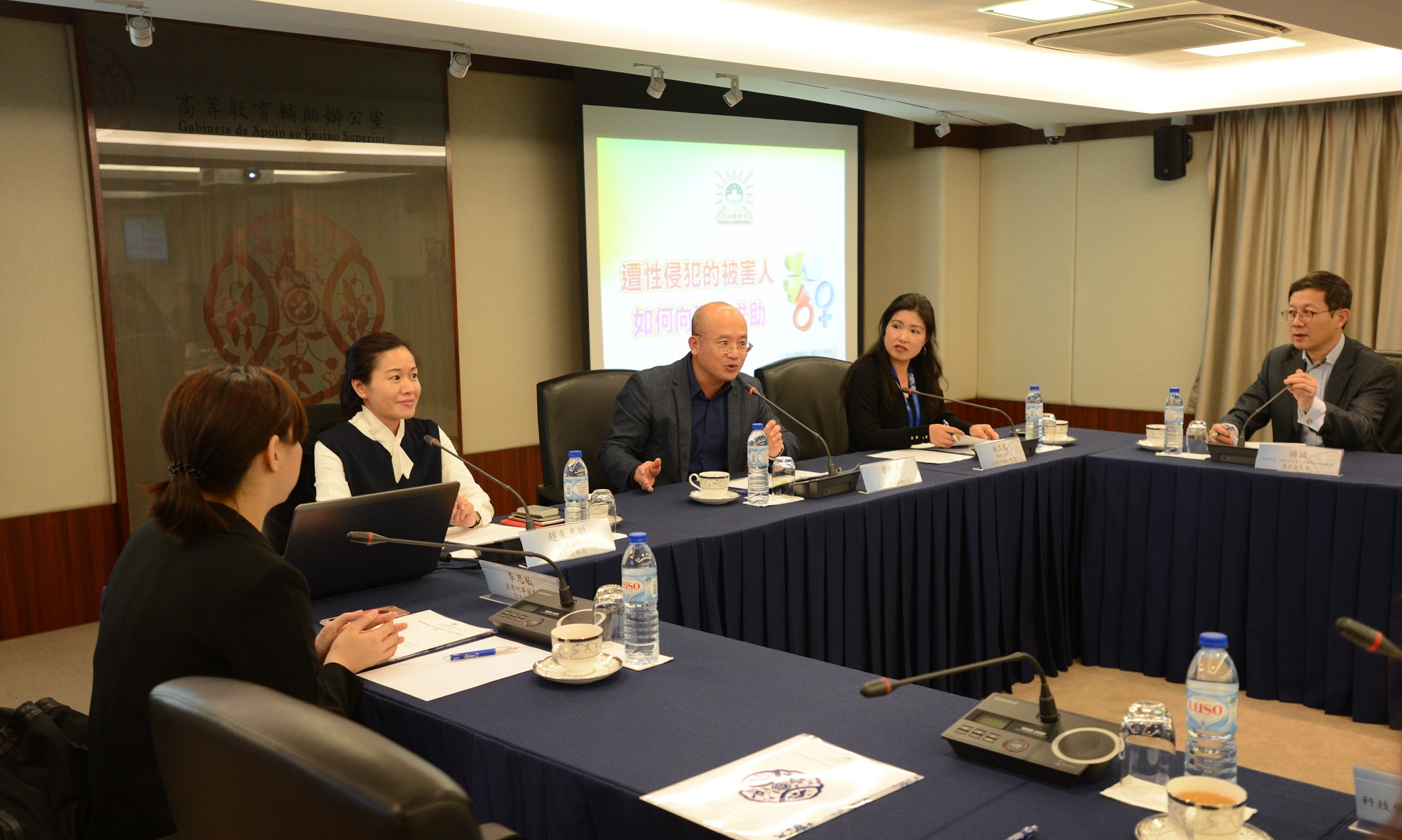 A Comissão para a Promoção da Igualdade de Género das Instituições do Ensino Superior de Macau realizou, recentemente, a segunda reunião do corrente ano no Gabinete de Apoio ao Ensino Superior, para a qual foram convidadas Chiu Chu Wai Man, chefe funcional, e Lei Si Man, investigadora criminal principal, da Polícia Judiciária (PJ), para partilharem os trabalhos desenvolvidos nas áreas da prevenção de agressão sexual na comunidade e no ambiente escolar, bem como as experiências de lidar com os respectivos casos.