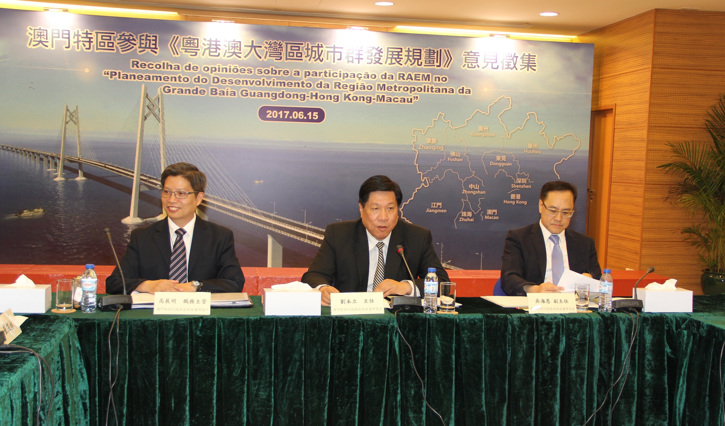 Para proceder à auscultação alargada de opiniões e sugestões dos diversos sectores da sociedade sobre o “Planeamento de Desenvolvimento da Região Metropolitana de Guangdong-Hong Kong -Macau”, o Governo da RAEM desenvolve, entre 13 e 28 de Junho, actividades de recolha de opiniões referente à participação da RAEM no “Planeamento de Desenvolvimento da Região Metropolitana da Grande Baía de Guangdong- Hong Kong-Macau”. Diversos sectores da sociedade reagiram proactivamente em relação à este assunto, e vários grupos associativos, revelando o espírito de anfitrião e alto sentido de responsabilidade social, tomaram a iniciativa de contactar o Gabinete de Estudos das Políticas, solicitando, sucessivamente, a manifestação, presencial, das suas solicitações e opiniões nesse Gabinete.