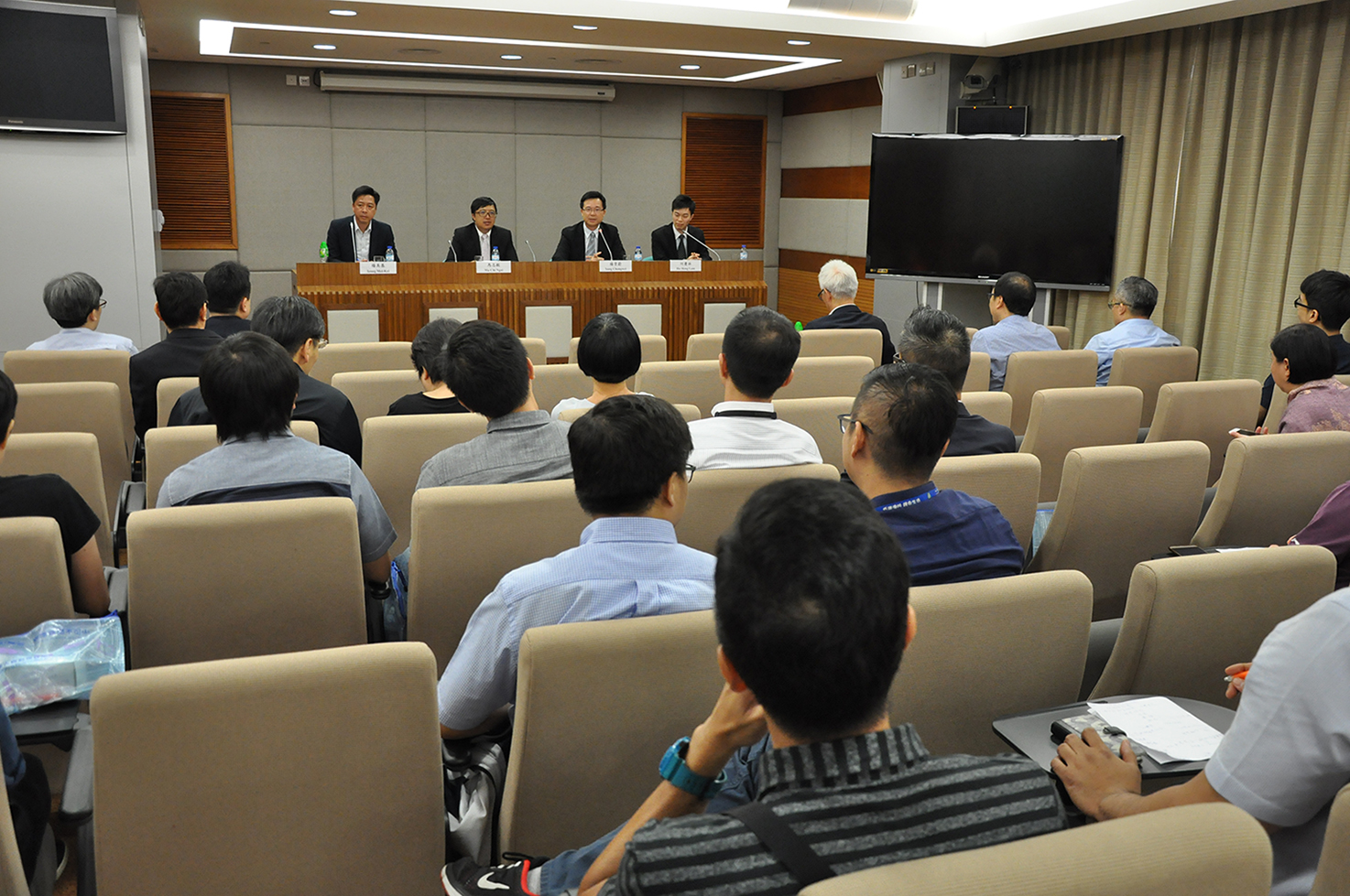 A palestra realizou-se no auditório do Centro de Formação para os Trabalhadores dos Serviços Públicos, em que foram convidados como oradores o Doutor Ma Chi Ngai Frederico, Presidente do Conselho de Administração do Fundo para o Desenvolvimento das Ciências e da Tecnologia (FDCT), o Doutor Ieong Mei Kei, Chief Technology Officer do Hong Kong Applied Science and Technology Research Institute (ASTRI), e o Sr. Ho Heng Lam, chefia funcional do sector jurídico do GPDP.