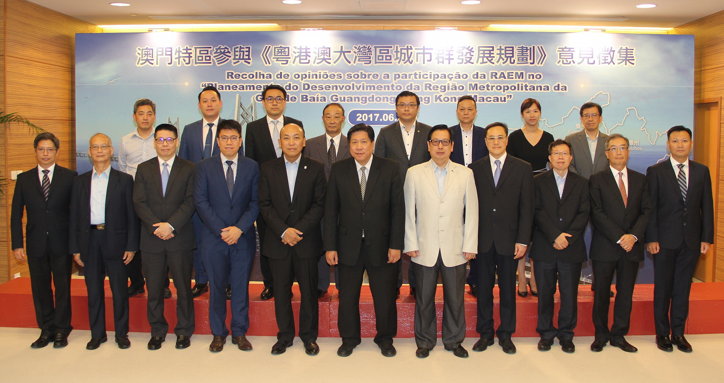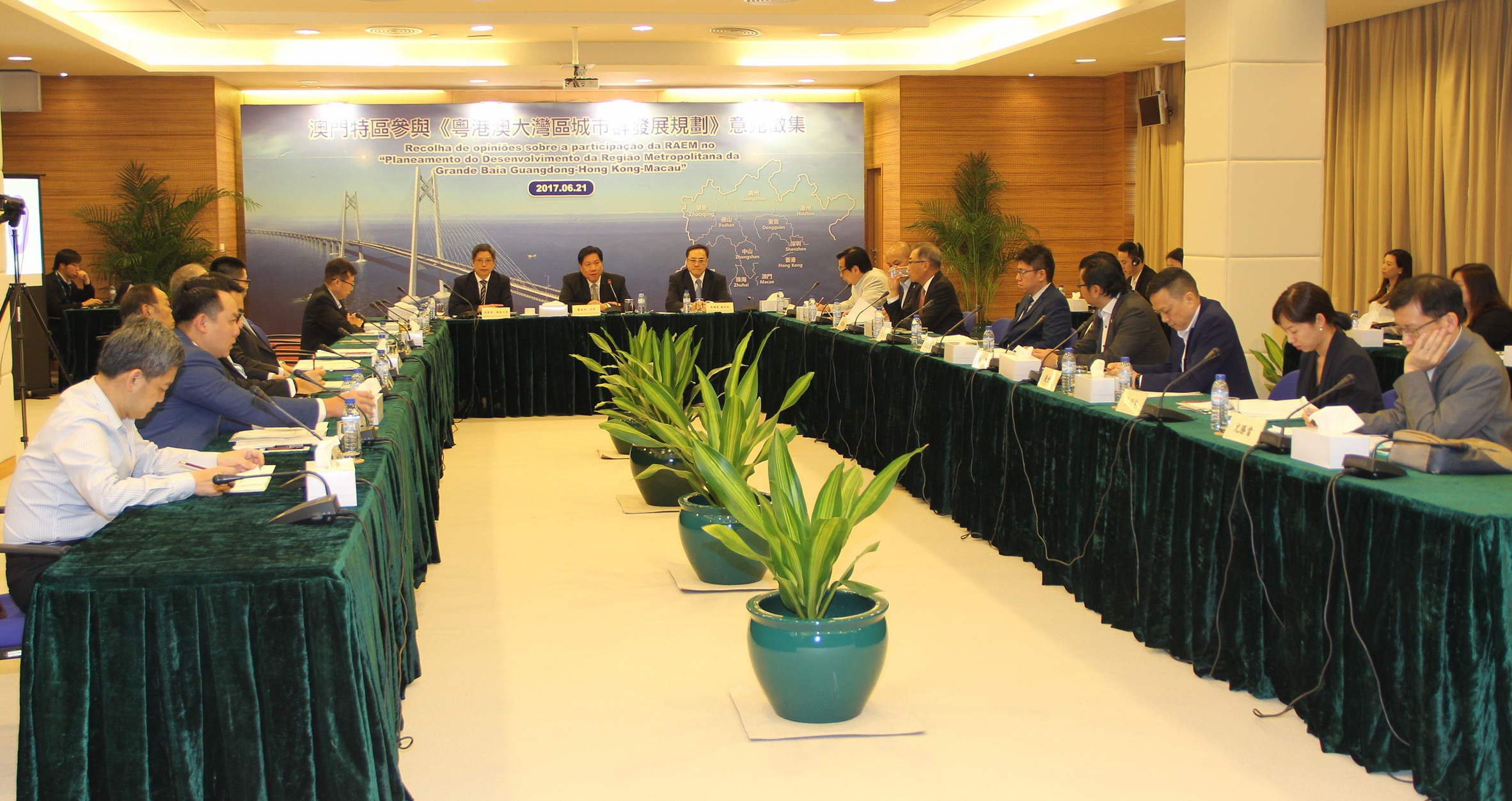 Na manhã do dia 21 de Junho, os dirigentes e representantes das associações da área de arquitectura, engenharia, planeamento, tecnologia de informação, ecologia e logística deslocaram-se às instalações do Gabinete de Estudos das Políticas do Governo da RAEM para se pronunciarem sobre o “Planeamento de Desenvolvimento da Região Metropolitana de Guangdong-Hong Kong -Macau”. O coordenador e vice-coordenador do Gabinete, Lao Pun Lap e Ung Hoi Ian, respectivamente, auscultaram atentamente as opiniões expressas.
