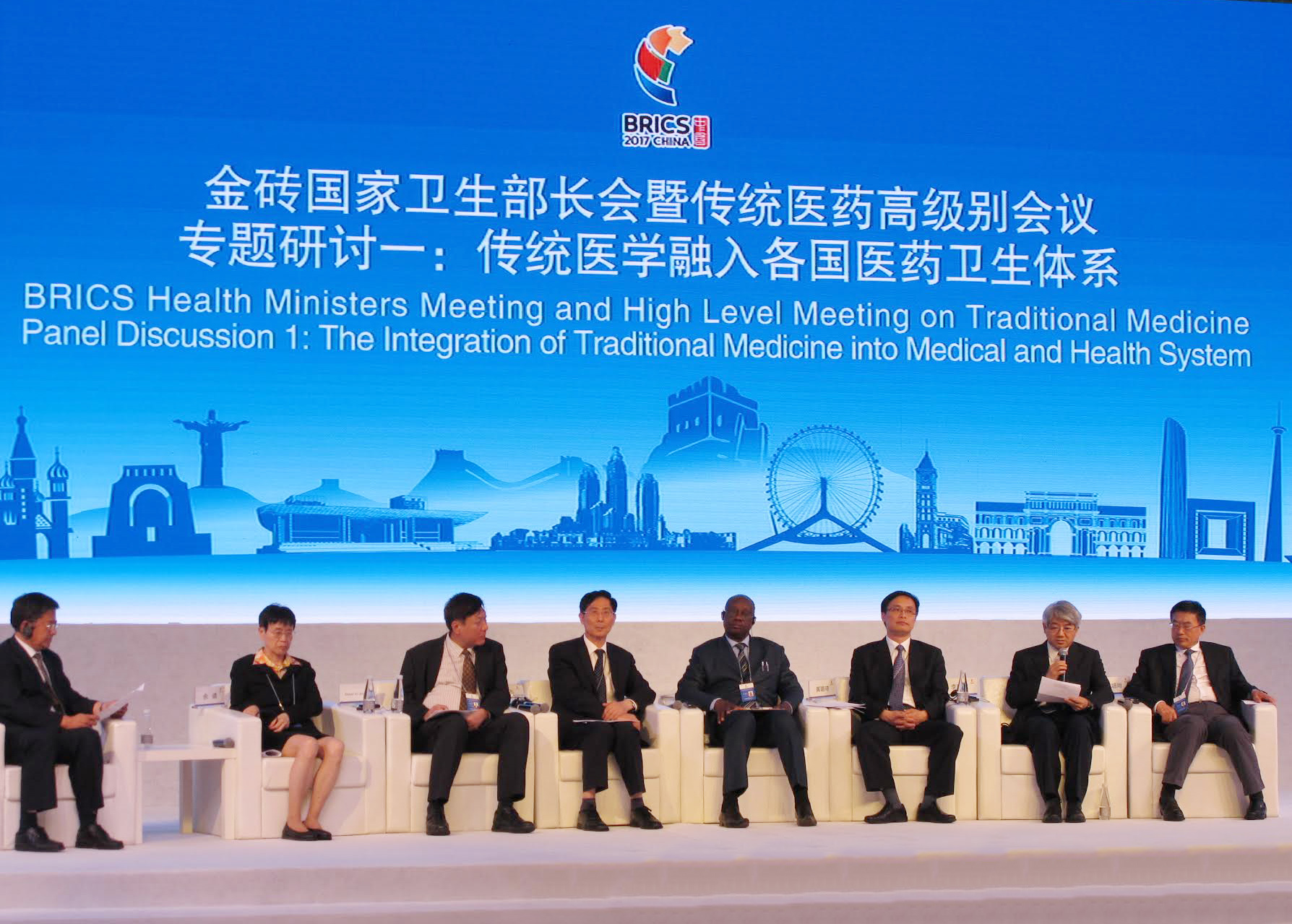 Na sequência do sucesso da primeira Reunião dos Ministros de Saúde dos BRICS e Reunião de Alto Nível sobre Medicina Tradicional em 2011 em Beijing, os países dos BRICS estabeleceram que a reunião de ministros seria realizada alternadamente, formando um mecanismo de diálogo contínuo entre os ministros da saúde. Em 2017, a China desempenhou o papel de presidente da reunião de ministros, cujo tema foi o “Reforço do sistema de saúde, promoção da concretização das metas para o desenvolvimento contínuo da saúde”. Na Reunião de Ministros de Saúde dos BRICS e Reunião de Alto Nível sobre Medicina Tradicional estiveram presentes o vice-presidente do Conselho de Estado da República Popular da China, Dr. Liu Yandong, o Secretário do Partido da Cidade de Tianjian, Dr. Li Hongzhong, o vice-secretário do Partido da Cidade de Tianjian, Dr. Wang Dongfeng, o Chefe da Comissão Nacional de Saúde e Planeamento Familiar, Dr. Li Bin, e os ministros da saúde e representantes da Índia, Rússia, Brasil e África do Sul. Durante a Reunião, foi anunciado o “Diário Tianjian” e a “Declaração Conjunta de reforço da cooperação no âmbito da medicina tradicional nos países dos BRICS”.