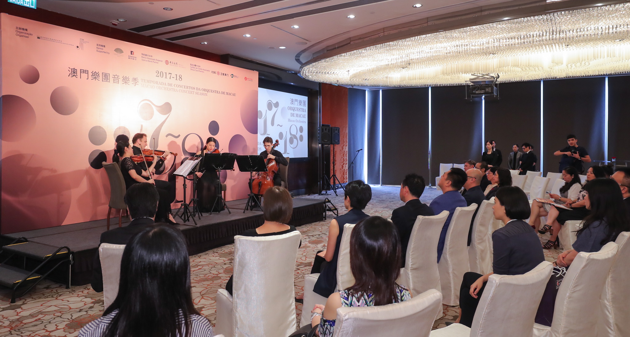 O lançamento da nova Temporada de Concertos 2017-2018 da OM teve lugar no dia 17 de Julho, pelas 15:00 horas, no Oceano Room do Mandarin Oriental Hotel, e contou com a presença do Vice-Presidente do Instituto Cultural do Governo da R.A.E. de Macau, Ieong Chi Kin; Director Musical e Maestro Principal da Orquestra de Macau, Lu Jia; Directora-Geral do Hotel Mandarin Oriental Macau, Jill Goh; Director-Geral da Divisão de Relações Públicas da Air Macau, Zhao Hong; Directora do Departamento de Banca Pessoal da Sucursal de Macau do Banco da China, Wong Kit I; Chefe do Departamento de Desenvolvimento das Artes do Espectáculo do Instituto Cultural do Governo da R.A.E. de Macau, substituta, Paula Lei; Directora do Conservatório de Macau do Instituto Cultural do Governo da R.A.E. de Macau, Chao Chiu Veng Chong; Directora Geral da Orquestra de Macau, Rebecca Chou; Compositor da ópera original local Um Sonho Perfumado, Liu ChenChen; Maestro Assistente da Orquestra de Macau, Francis Kan; Concertino da Orquestra de Macau, Paolo Morena entre outros.