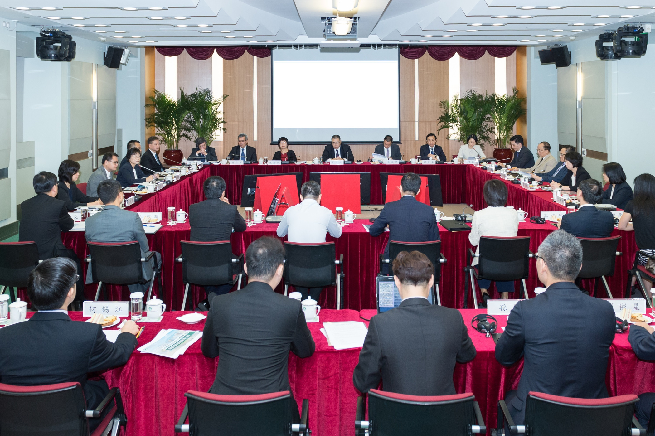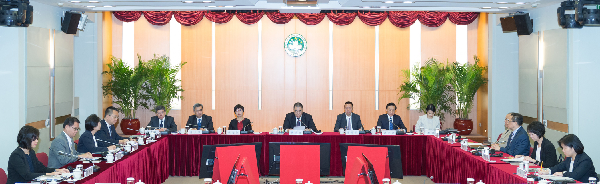 Estiveram presentes a secretária para Administração e Justiça, Sónia Chan, o secretário para a Economia e Finanças, Lionel Leong, o secretário para a Segurança, Wong Sio Chak, o secretário para os Assuntos Sociais e Cultura, Alexis Tam, o secretário para os Transportes e Obras Públicas Raimundo do Rosário, o comandante-geral dos Serviços de Polícia Unitários, Ma Io Kun, o director-Geral dos Serviços de Alfândega, Alex Vong, bem como a chefe de Gabinete do Chefe do Executivo, O Lam e representantes dos respectivos departamentos.