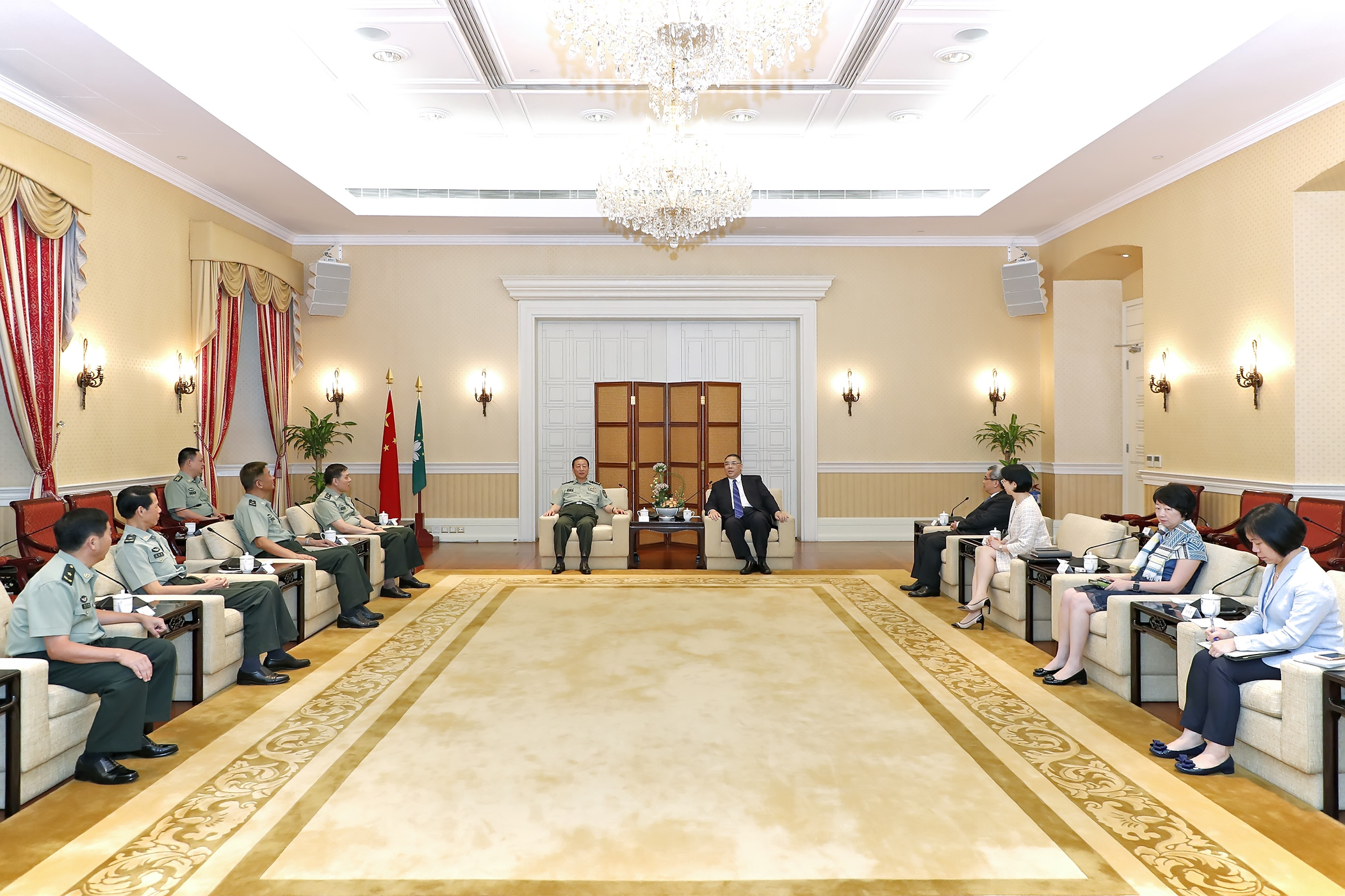 No encontro estiveram ainda presentes o subchefe do Departamento Político do comando do teatro do sul, Chen Jiajing, o ex-comissário político, coronel Zhang Zhimeng, o secretário para a Segurança, Wong Sio Chak e a chefe do Gabinete do Chefe do Executivo, O Lam.