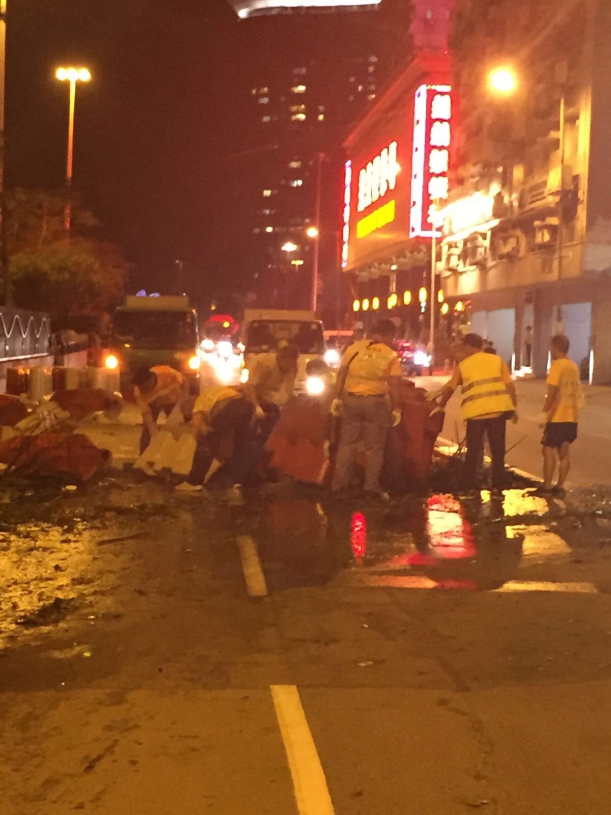 Neste momento, registam-se ainda inundações em quatro (4) parques de estacionamento público, estando as equipas da DSAT, do Corpo de Bombeiros e das empresas de gestão dos auto-silos a acompanhar os trabalhos. Os restantes parques voltaram ao seu funcionamento normal. No caso do Auto-Silo do Edifício Fai Tat, o Corpo de Bombeiros está a empenhar todos os esforços para retirar a água. Também as empresas de gestão de parque de estacionamento estão a acompanhar a retirada de água nos Auto-Silos do Edifício Cheng I e do Edifício Pak Lok. Até ao momento, ainda não foram levados a cabo os trabalhos de retirada da água no Auto-Silo do Lido devido à falta de condições provocadas pelo apagão de electricidade.
