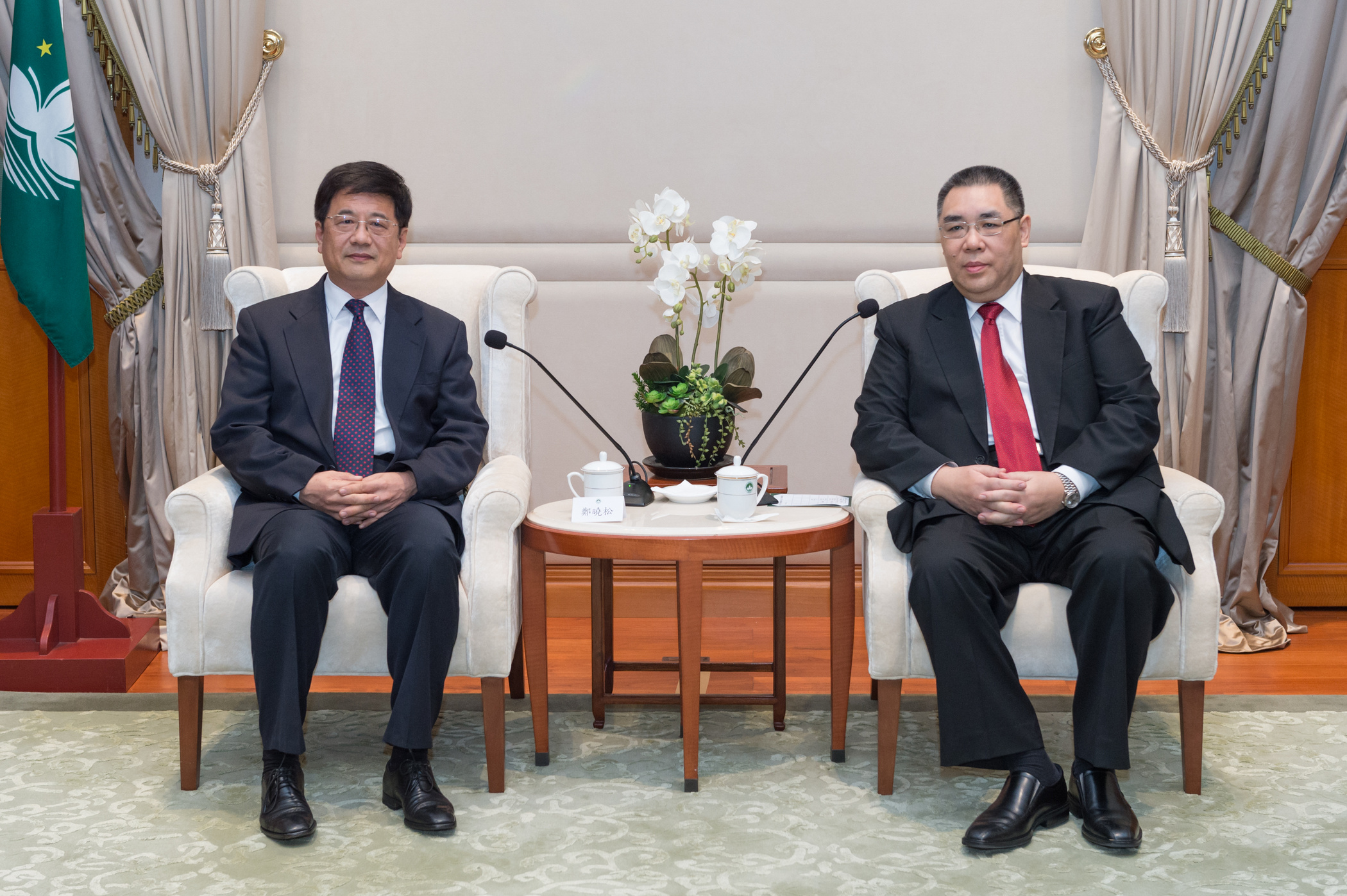 O Chefe do Executivo, Chui Sai On, teve encontro, esta manhã (26 de Setembro), na Sede do Governo, com o novo director do Gabinete de Ligação do Governo Popular Central na RAEM, Zheng Xiaosong, no qual ambas as partes concordam com a necessidade de manter uma comunicação e cooperação efectiva e esforços conjuntos na promoção do sucesso da concretização do princípio “um país, dois sistemas” e no desenvolvimento sustentável da RAEM.