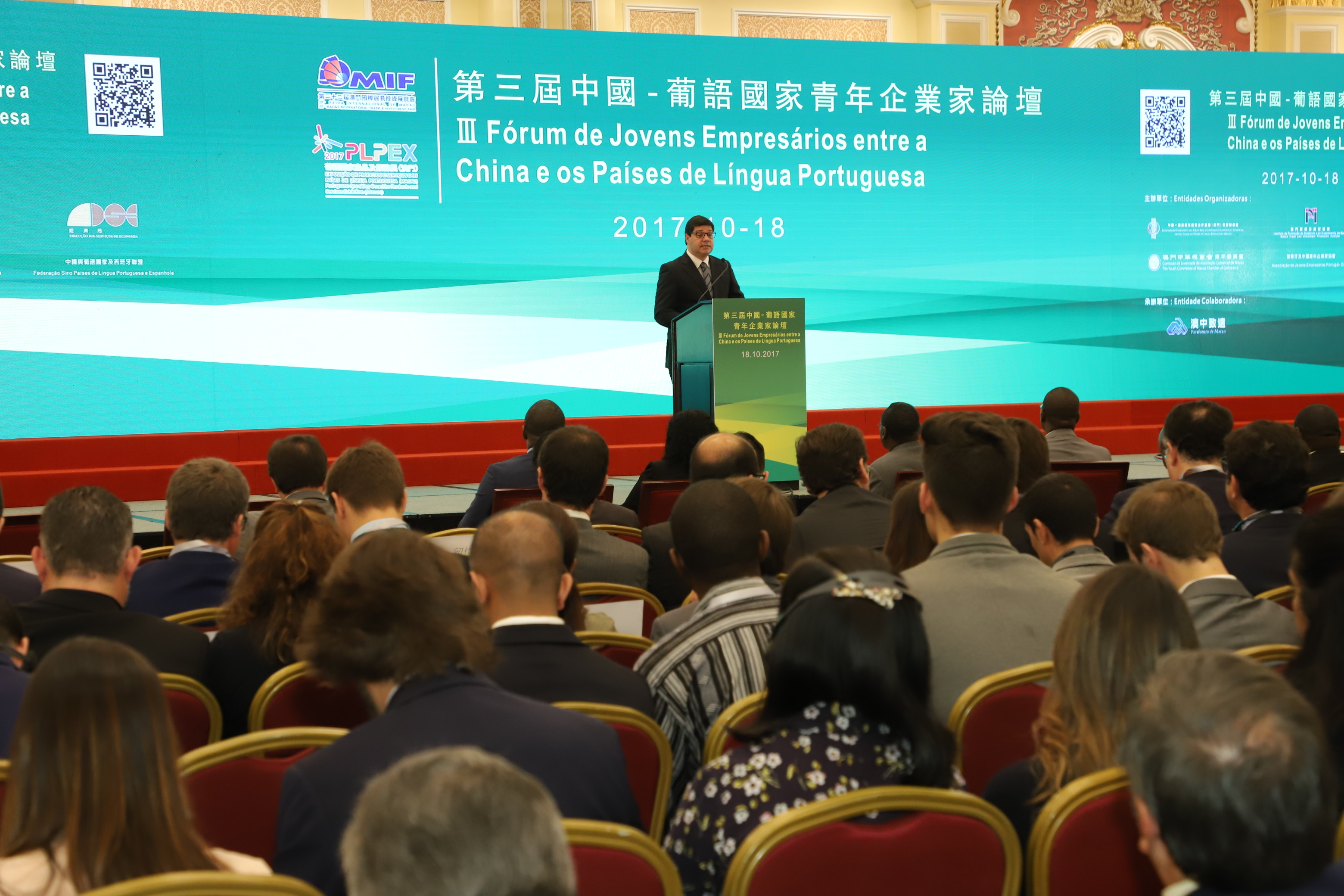 Realiza-se, na parte da manhã do dia 18 de Outubro, no Salão Florence do Venetian Macao-Resort-Hotel, o “III Fórum de Jovens Empresários entre a China e os Países de Língua Portuguesa” com a organização conjunta do Secretariado Permanente do Fórum para a Cooperação Económica e Comercial entre a China e os Países de Língua Portuguesa, do Instituto de Promoção do Comércio e do Investimento de Macau, da Direcção dos Serviços de Economia, da Comissão de Juventude da Associação Comercial de Macau e da Associação de Jovens Empresários Portugual-China, bem como da Federação Sino Países de Língua Portuguesa e Espanhola. Na mesma ocasião, realiza-se ainda a cerimónia de descerramento da placa do “Centro de Intercâmbio de Inovação e Empreendedorismo para Jovens da China e dos Países de Língua Portuguesa”.