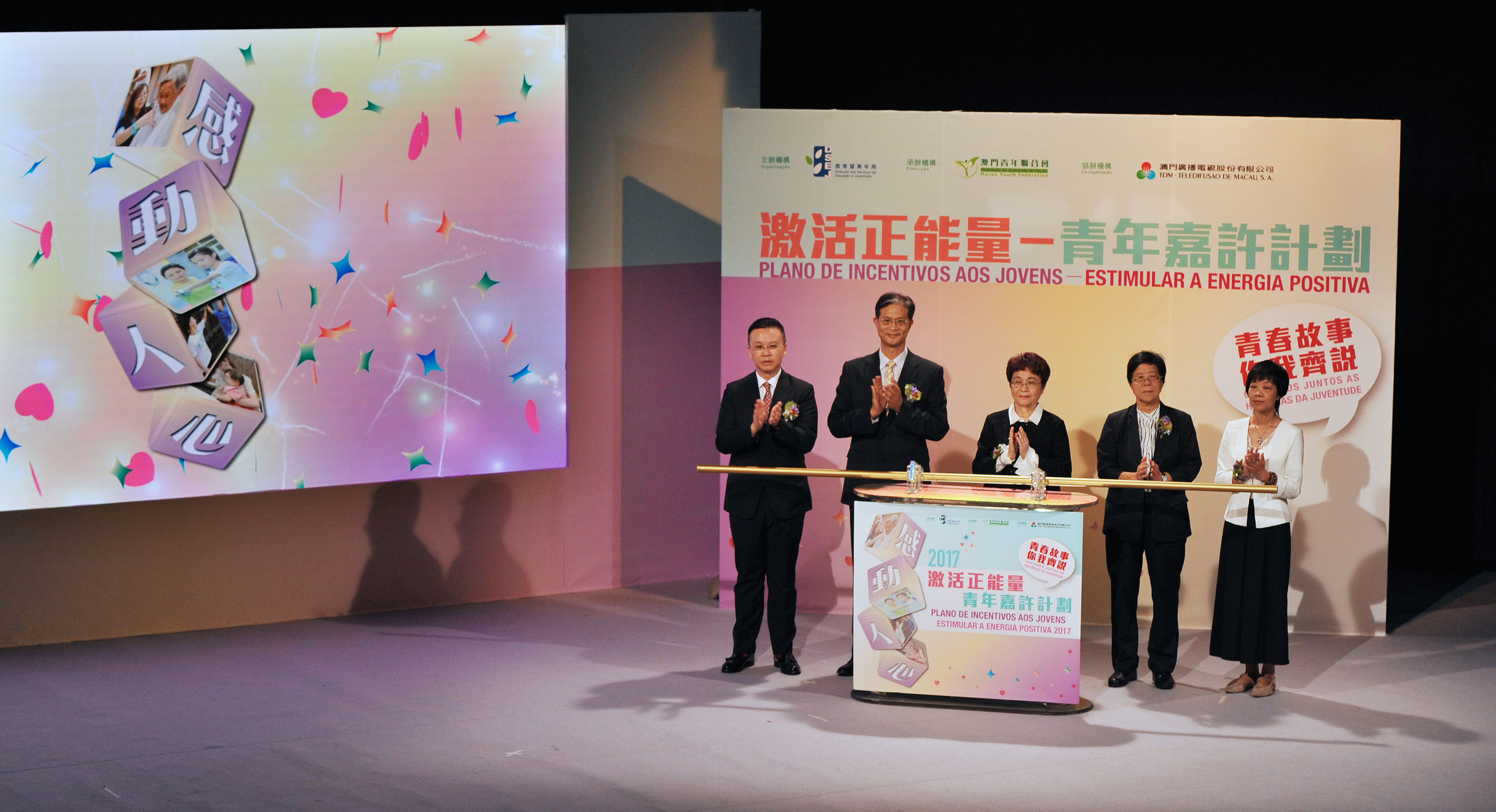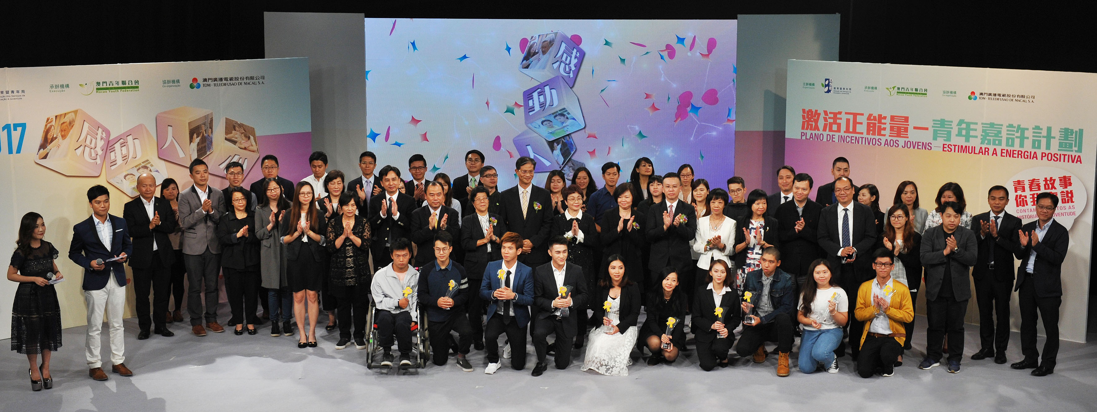 A cerimónia de entrega dos prémios do “Plano de Incentivos aos Jovens– Estimular a Energia Positiva” de 2017 organizado pela Direcção dos Serviços de Educação e Juventude (DSEJ) e realizado pela Federação de Juventude de Macau em colaboração com a Teledifusão de Macau, S.A., realizou-se pelas 19H00, do dia 27 de Outubro, no Pavilhão II do Fórum de Macau. A entidade organizadora elogiou e premiou os dez protagonistas das histórias comoventes e convidou-os a partilharem as suas experiências e sentimentos no palco, numa atmosfera carinhosa e afectuosa.
