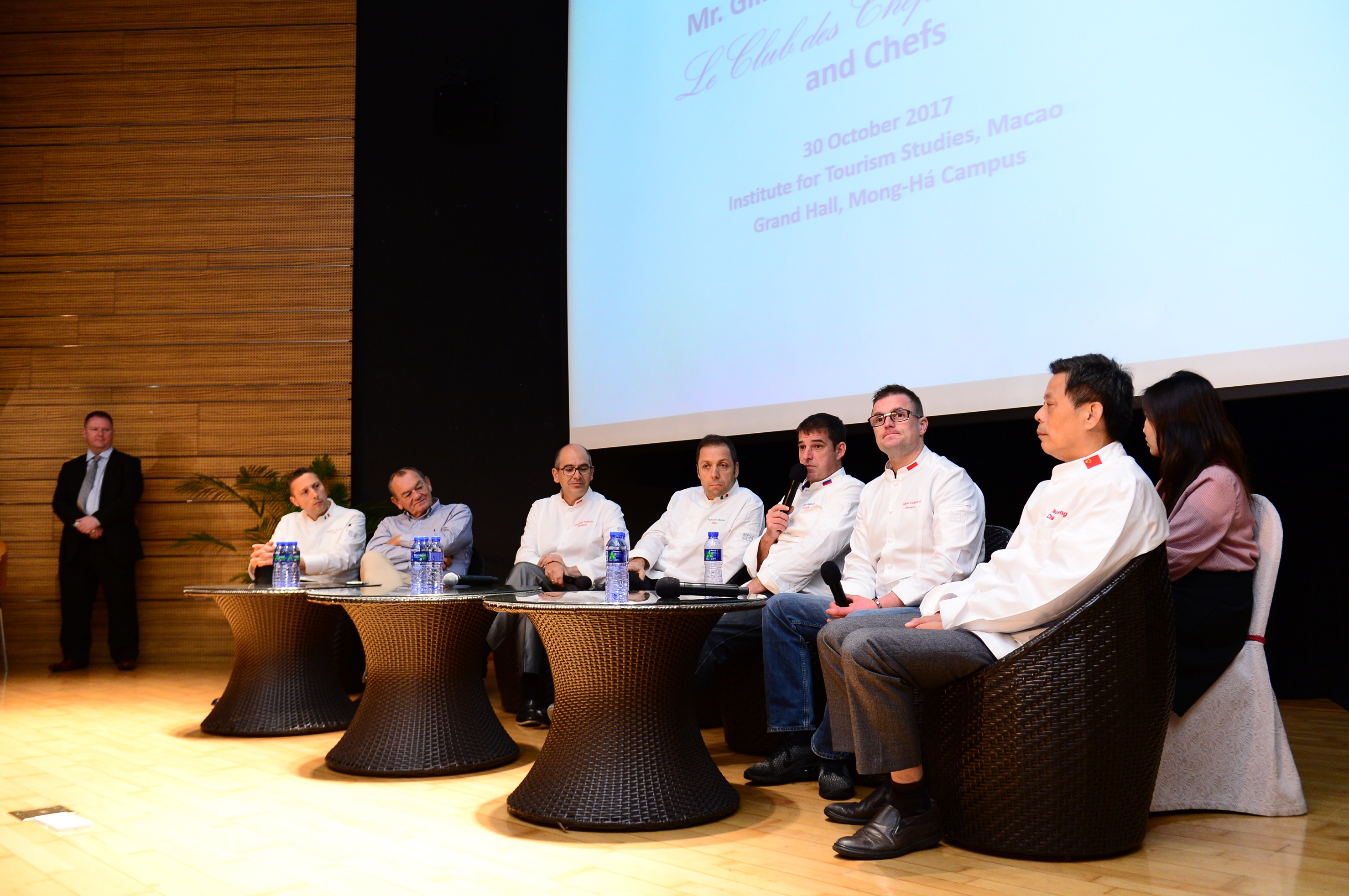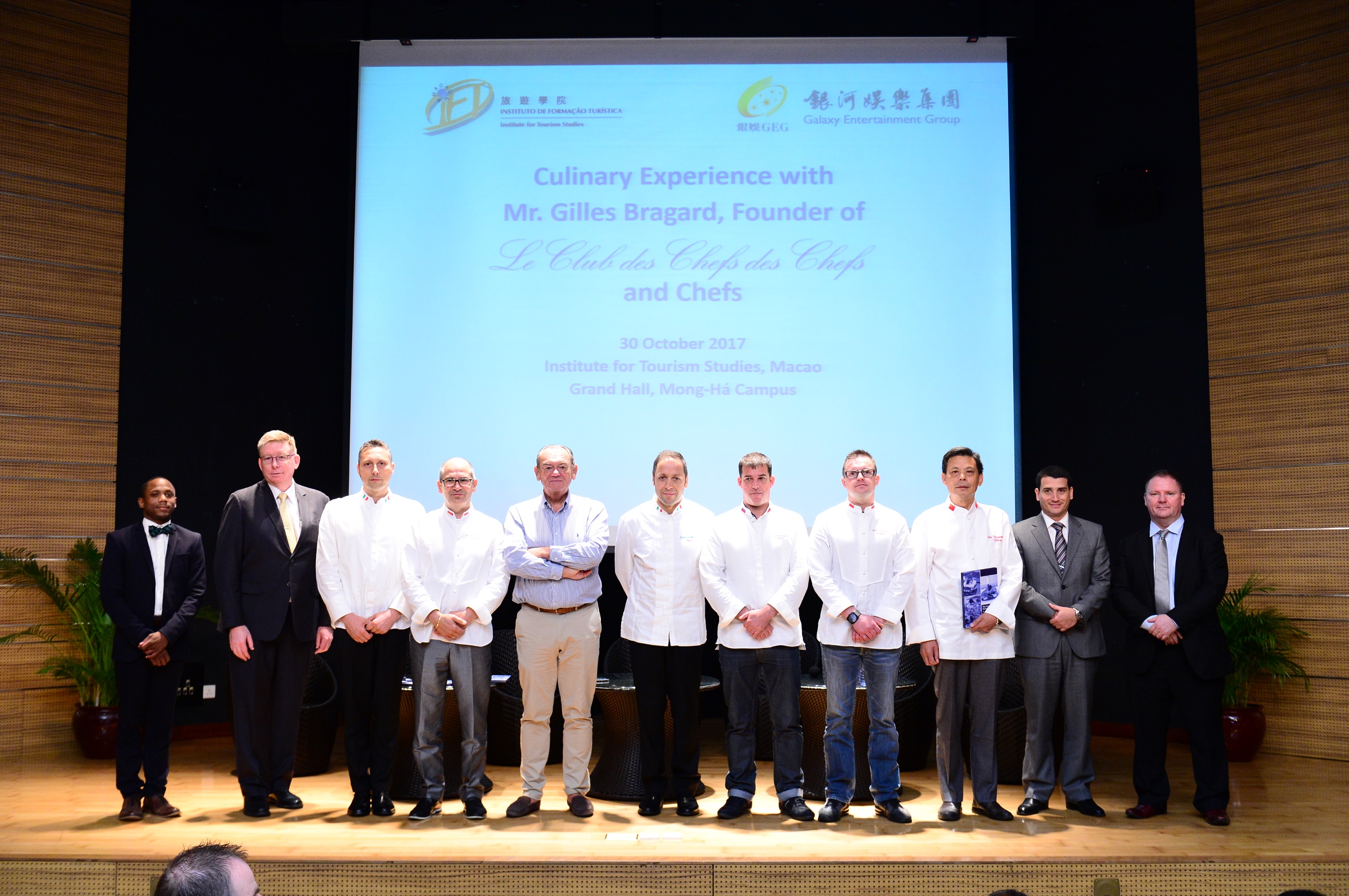 Institute for Tourism Studies (IFT) had the honour to collaborate with Galaxy Entertainment Group to organise a culinary experience sharing event with Le Club des Chefs des Chefs Association for IFT Culinary Arts Management bachelor degree programme students on 30 October 2017. The founder and 6 prestigious chefs from the Association shared their meaningful and knowledgeable culinary insights and experience with the students.