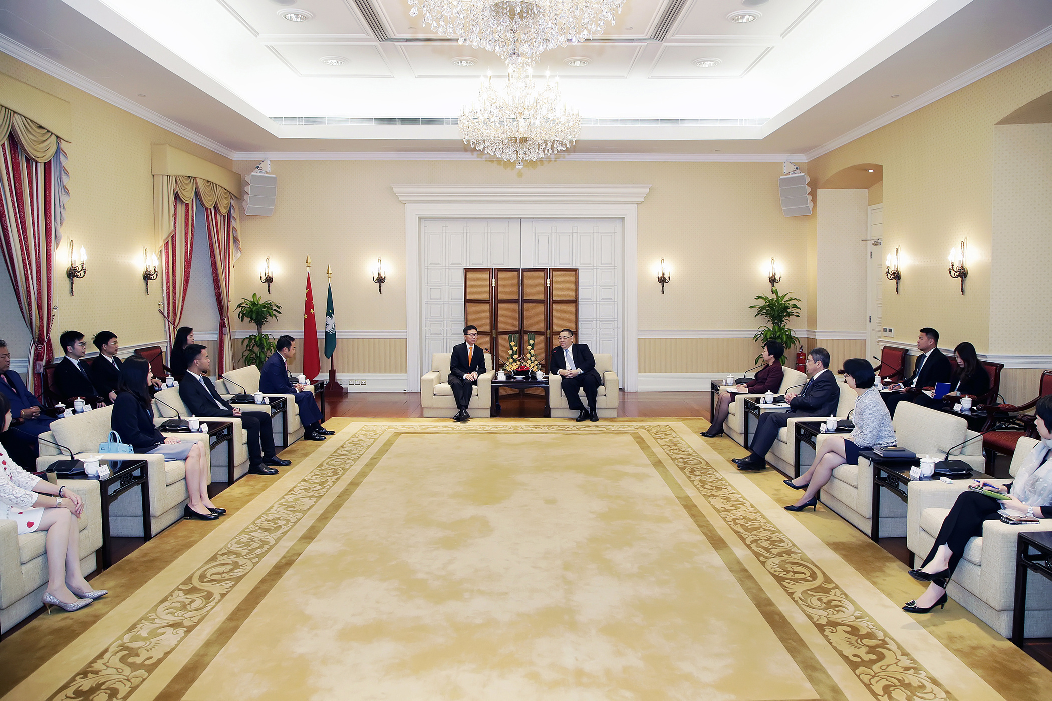 O encontro contou ainda com a presença da secretária para a Administração e Justiça, Sónia Chan, do secretário para os Transportes e Obras Públicas, Raimundo do Rosário, e da chefe do Gabinete do Chefe do Executivo, O Lam.
