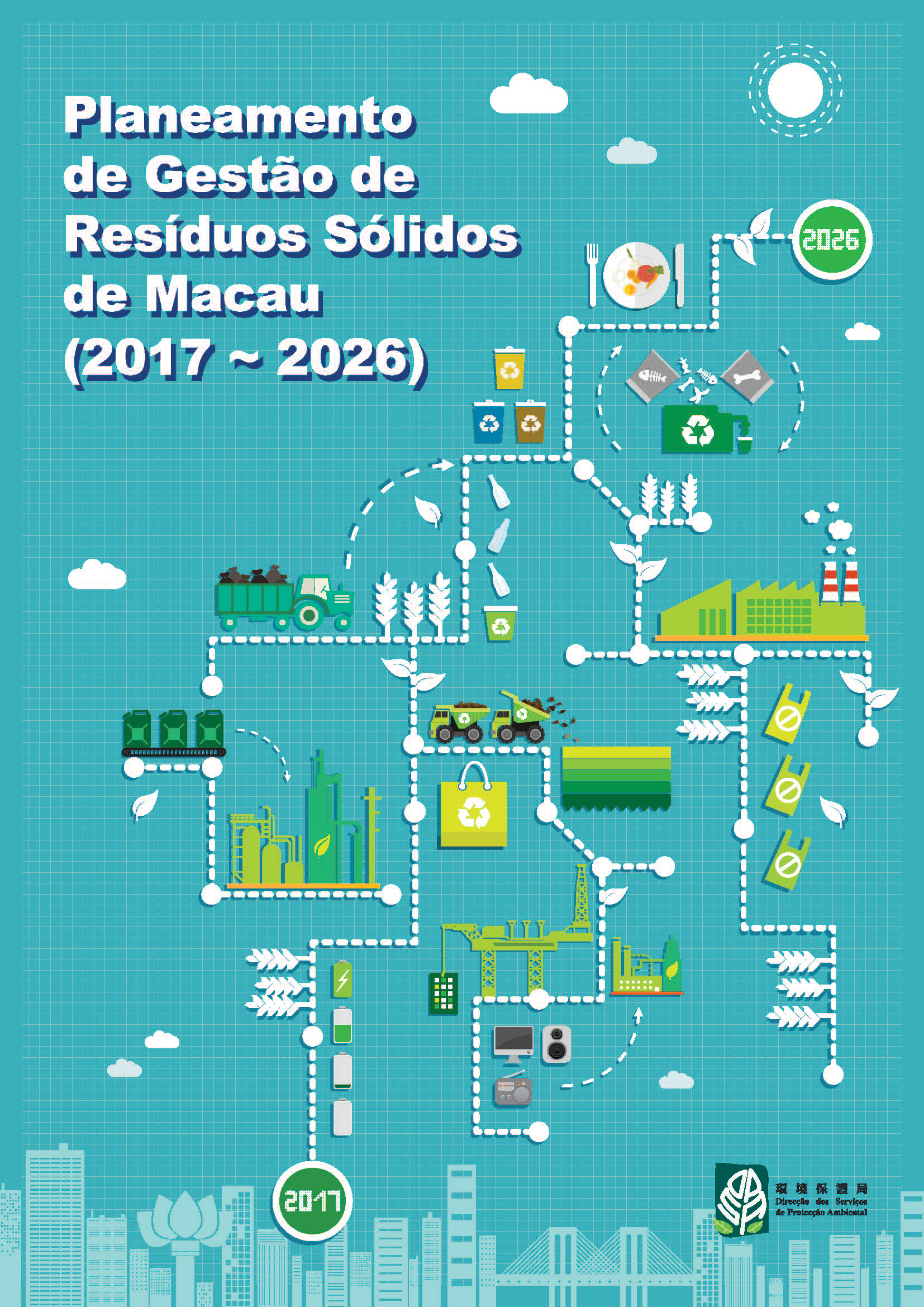 O Planeamento de Gestão de Resíduos Sólidos de Macau (2017 - 2026) em versões chinesa e portuguesa foi publicado por meio electrónico e está disponível para ser visualizado e descarregado na página electrónica da DSPA (http://www.dspa.gov.mo/pdf/20171227_SolidWastesManagementPlan_PT.pdf).