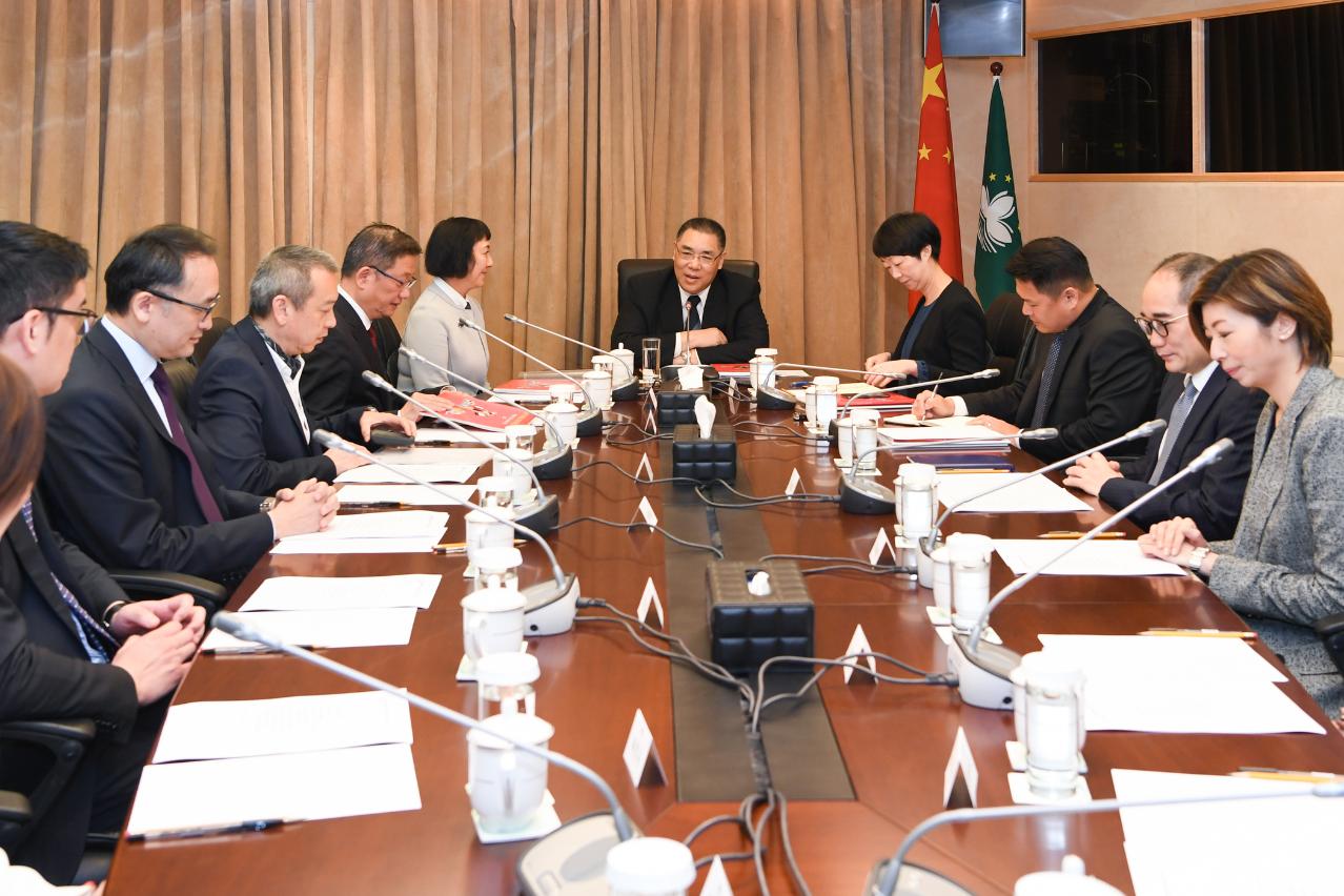 O Chefe do Executivo, Chui Sai On, recebeu, hoje (14 de Março), na Sede do Governo, a presidente da Comissão Organizadora do Festival de Compras de Macau 2018, Terry Sio, e outros membros, onde assistiu à apresentação do plano de trabalho, bem como trocou opiniões sobre a promoção de Macau, o apoio ao desenvolvimento das pequenas e médias empresas (PME), entre outros assuntos.