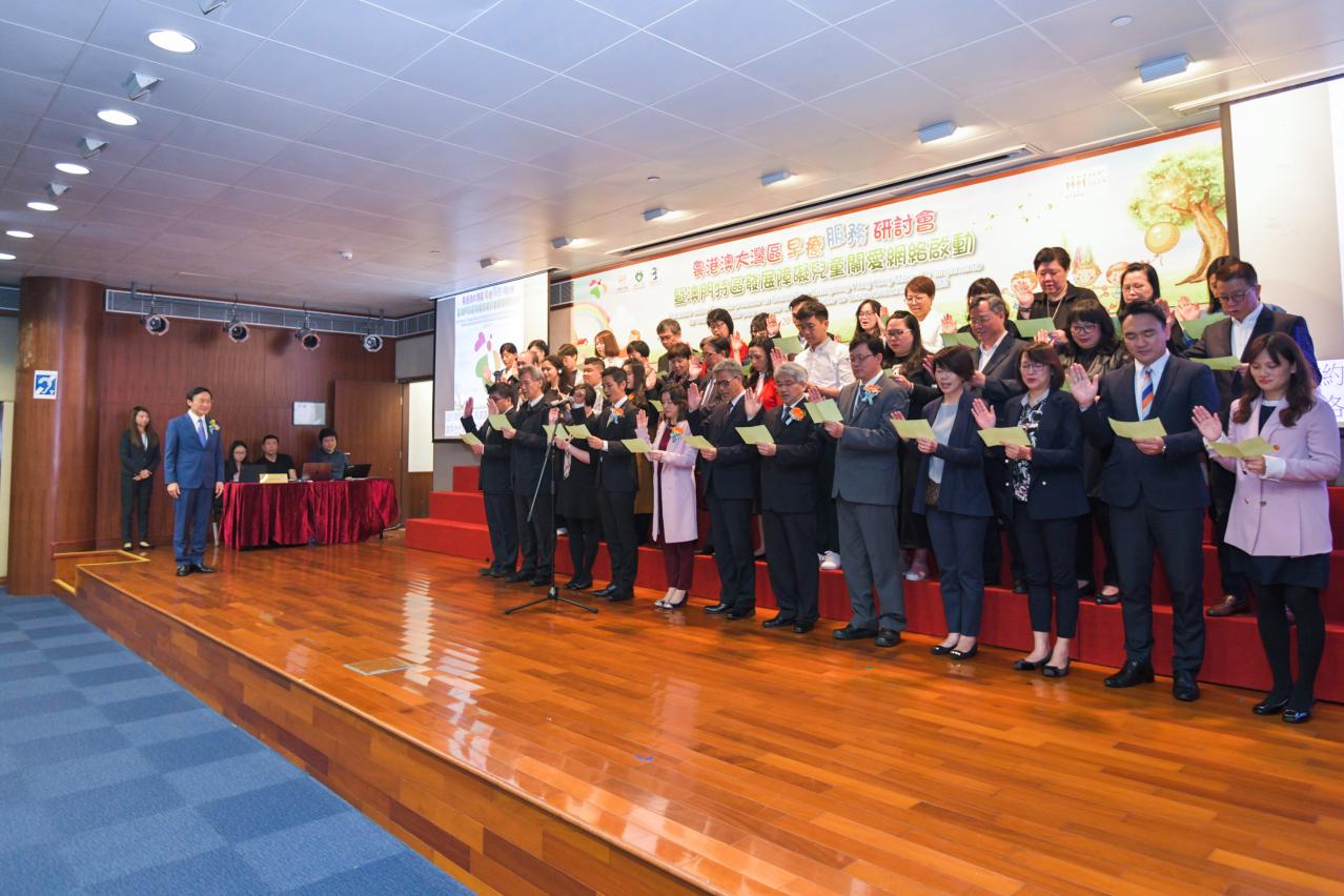 A cerimónia alem da presença do Secretário para os Assuntos Sociais e Cultura, Doutor Alexis Tam, contou ainda com a presença do Chefe do Gabinete do Secretário para os Assuntos Sociais e Cultura, Dr. Ip Peng Kin, do Director dos Serviços de Saúde, Dr. Lei Chin Ion, do Director da Direcção dos Serviços de Educação e Juventude, Dr. Lou Pak Sang e da Presidente do Instituto de Acção Social, Dra. Vong Yim Mui, entre outros. Esta actividade contou com a participação de cerca de 300 pessoas que abrangem representantes das instituições de serviços de intervenção e pais.