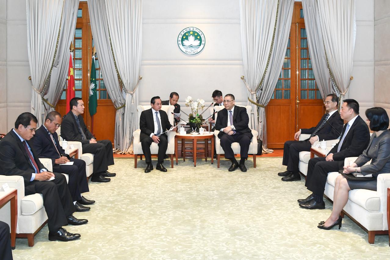 Em 2015, o primeiro-ministro do Camboja, Hun Sen, deslocou-se a Macau e, no ano seguinte, as duas partes assinaram um memorando de cooperação na área da formação turística. Já em 2016, o governador Khim Bunsong havia visitado a cidade, no âmbito do "Plano de Visitas de Presidentes de Câmara". Para Chui Sai On estes dados demonstram o aumento de contactos entre Macau e o Camboja nos últimos anos.