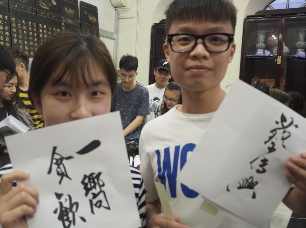The topic of this activity was ‘birdcage’, a well-known object to people from both Chinese and Western cultures. The art house owns a collection of birdcages that can be traced back to the last century. From the explanation of professors, the students gained a better understanding of birdcages and their cultural values. Choi also presented his calligraphy works to students as souvenirs.