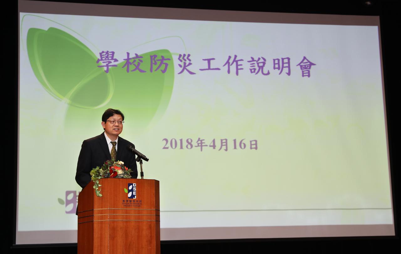 A fim de reforçar a consciência do pessoal escolar para as situações de crise resultantes de catástrofes, aumentar os seus conhecimentos e técnicas de prevenção das mesmas e minimizar os danos causados nas escolas por catástrofes futuras, a Direcção dos Serviços de Educação e Juventude (DSEJ) e os Serviços de Polícia Unitários realizaram uma sessão de esclarecimento dos trabalhos de prevenção de catástrofes nas escolas, na tarde do dia 16 de Abril de 2018, no auditório da Escola Kao Yip, que contou com a presença do director da DSEJ, Lou Pak Sang, o Comissário dos Serviços de Polícia Unitários, Fan Ka Wa, as chefias da DSEJ e ainda dirigentes e o respectivo pessoal de 77 escolas, num total de mais de 300 participantes.