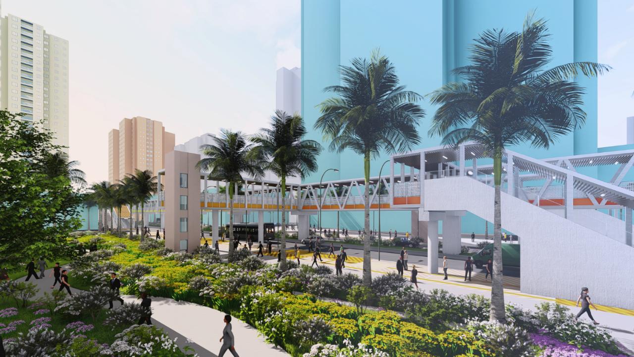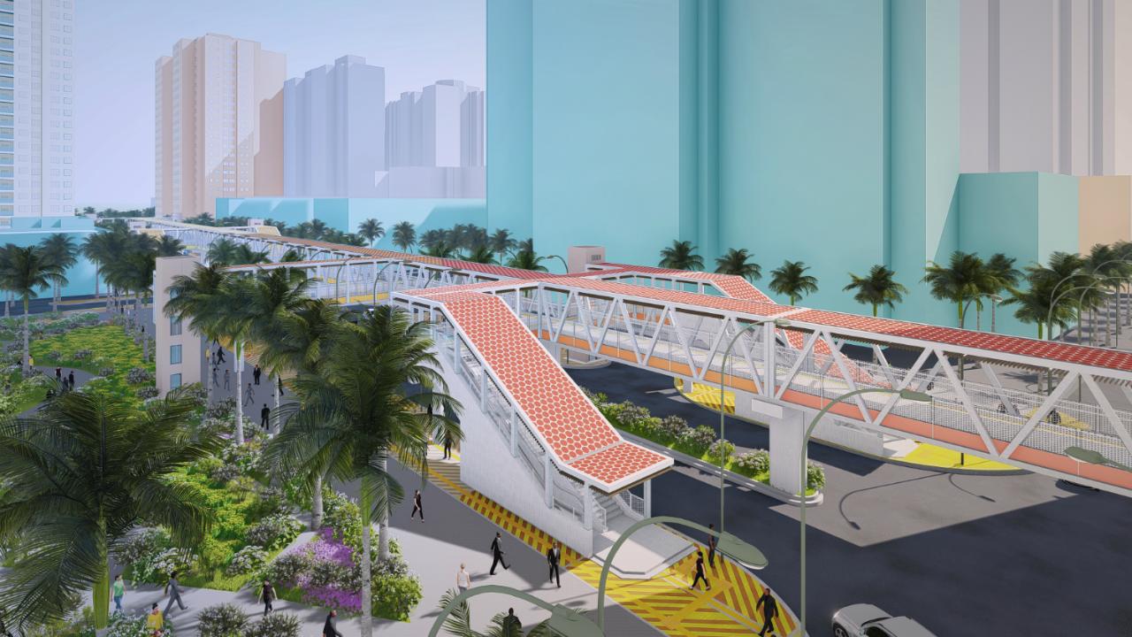A passagem pedonal aérea terá 10,6 m de altura, 4,5 m de largura e cerca de 700 m de comprimento total. A empreitada é dividida em duas partes que serão paralelamente realizadas, esforçando-se por concluir em 1 ano a parte relativa ao troço entre a estação de metro ligeiro em construção na Avenida do Estádio e a Rotunda do Estádio.