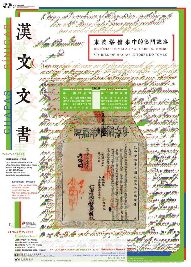 A edição inaugural do “Encontro em Macau – Festival de Artes e Cultura entre a China e os Países de Língua Portuguesa” organizado pelo Instituto Cultural de Macau contará com uma variedade de eventos e actividades. A exposição “Chapas Sínicas – Histórias de Macau na Torre do Tombo”, apresentada conjuntamente pelo Arquivo de Macau e o Arquivo Nacional da Torre do Tombo de Portugal, terão duas fases, a primeira de 7 de Julho a 7 de Agosto de 2018, e a segunda de 21 de Agosto a 7 de Dezembro de 2018. A cerimónia de abertura da exposição terá início às 17:00 horas do dia 6 de Julho de 2018, no Museu das Ofertas sobre a Transferência de Soberania de Macau. Em conexão com a exposição, irá realizar-se uma palestra marcada para as 15:00 horas do dia 8 de Julho. O público é convidado a participar.