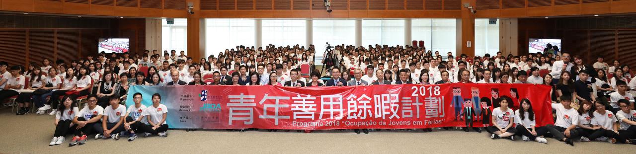 Realizou-se, com sucesso, a cerimónia de lançamento do programa “Ocupação de Jovens em Férias 2018”, no dia 1 de Julho (domingo), pelas 15h00, no Centro de Convenções do Centro de Ciência de Macau. O programa, organizado pela Direcção dos Serviços de Educação e Juventude (DSEJ) e executado pela Macau Junior Business Trade Development Association, conta ainda com o apoio do Centro de Ciência de Macau, S.A. e a participação e promoção conjunta de diversos serviços públicos e instituições particulares de Macau.