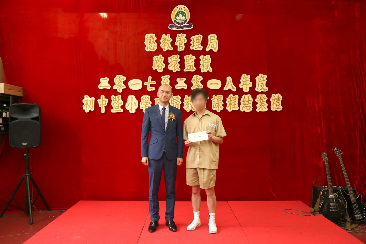 Desde sempre, a DSC tem vindo, em colaboração com a Direcção dos Serviços de Educação e Juventude, a organizar dos Cursos dos Ensinos Recorrentes aos reclusos. Neste ano lectivo, os referidos cursos contaram com a participação de 136 estudantes do ensino primário e 17 do ensino secundário geral. Na cerimónia, foram atribuidos um prémio da “Fundação de Macau” a um recluso, prémios de assiduidade a 15 alunos. Houve ainda 8 alunos do ensino secundário geral recorrente que foram dignos dos prémios de aproveitamento “excelente” e “muito bom”, oferecidos pela Escola Secundária Luso-Chinesa de Luís Gonzaga Gomes, bem como, oferecidos as Cartas de agradecimento de serviço criadas no presente ano pela DSC.