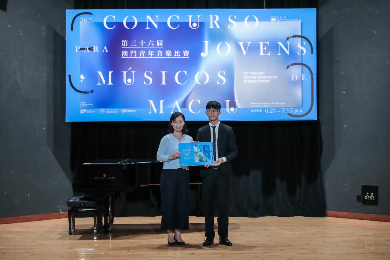 O vencedor do Prémio Instituto Cultural, Chan Wai Chon, de 18 anos de idade, conquistou o primeiro prémio nas categorias de Saxofone (Nível Avançado) e de Concerto de Sopros (Nível Avançado). Começou a aprender saxofone com Tam Ou Man, aos 10 anos de idade, e mais tarde juntou-se à Banda Sinfónica Juvenil de Macau. Em 2013, começou a frequentar os Cursos de Divulgação da Escola de Música do Conservatório de Música de Macau, sendo discípulo de Timothy Sun. Em 2017, recebeu o diploma de Execução Musical em Saxofone da Associated Boards of the Royal Schools of Music (ABRSM), com distinção, tendo estudado com Hugo Loi. Durante a competição, Chan Wai Chon interpretou um concerto completo de elevada dificuldade, possuindo um timbre requintado, pleno de musicalidade e forte sentido rítmico, e merecendo elogios por parte de todo o júri. Chan Wai Chon irá receber uma bolsa de estudos oferecida pelo IC, a qual consiste no valor das propinas do primeiro ano de um curso universitário ou avançado na área da música.