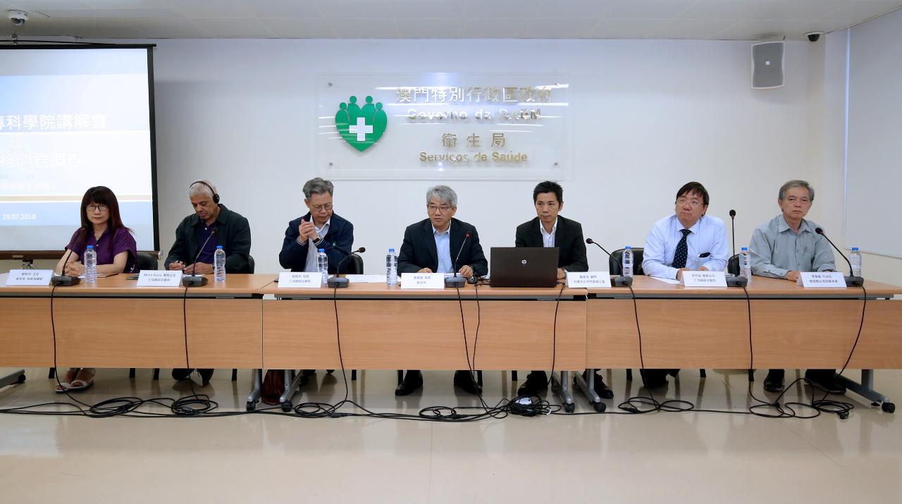 Os Serviços de Saúde realizaram, domingo, 29 de Julho, uma sessão de esclarecimento sobre a Academia Médica de Macau e um seminário específico para médicos privados sobre questionário de qualificação de especialidade. O seminário foi presidido pelo Director dos Serviços de Saúde, Dr. Lei Chin Ion, estiveram ainda presentes o subdirector e director do CHCSJ, Dr. Kuok Cheong U, o assessor do Gabinete do Secretário para os Assuntos Sociais e Cultura, Dr. Tai Wa Hou, médicos adjuntos da Direcção do CHCSJ, Dr. Mário Évora e Dr. Pang Heong Keong, Coordenadora do Gabinete de Coordenação Técnica dos Cuidados de Saúde Generalizados, Dra. Kwok Chau Sha e chefe substituto da Direcção dos Internatos Médicos, Dr. Lei Cho Fong.