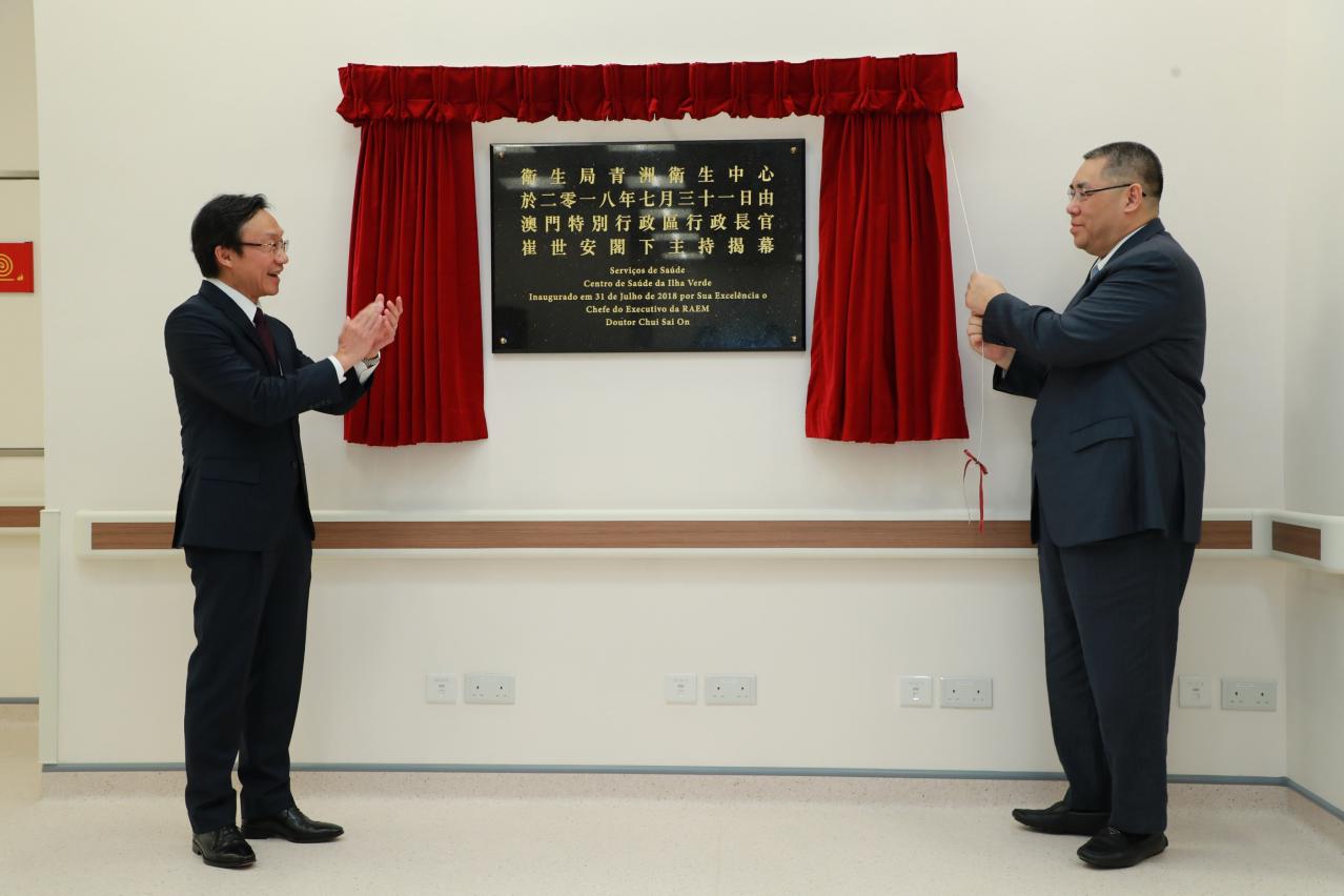 O Chefe do Executivo da Região Administrativa Especial de Macau, Dr. Chu Sai On, presidiu terça-feira, 31 de Julho de 2018 à cerimónia de inauguração do Centro de Saúde da Ilhas acompanhado do Secretario para os Assuntos Sociais e Cultura, Doutor Alexis Tam Chon Weng. Estiveram ainda presentes na cerimónia a chefe do Gabinete do Chefe do Executivo, O Lam, o Chefe do Gabinete do Secretário para os Assuntos Sociais e Cultura, Ip Peng Kun, o Director dos Serviços de Saúde, Lei Chin Ion e representantes do Governo, representantes de diversas instituições médicas locais, representantes da União Geral das Associações dos Moradores de Macau, da Associações de Moradores de Macau e dos Conselhos Consultivos de Serviços Comunitários de Zona Norte, etc.