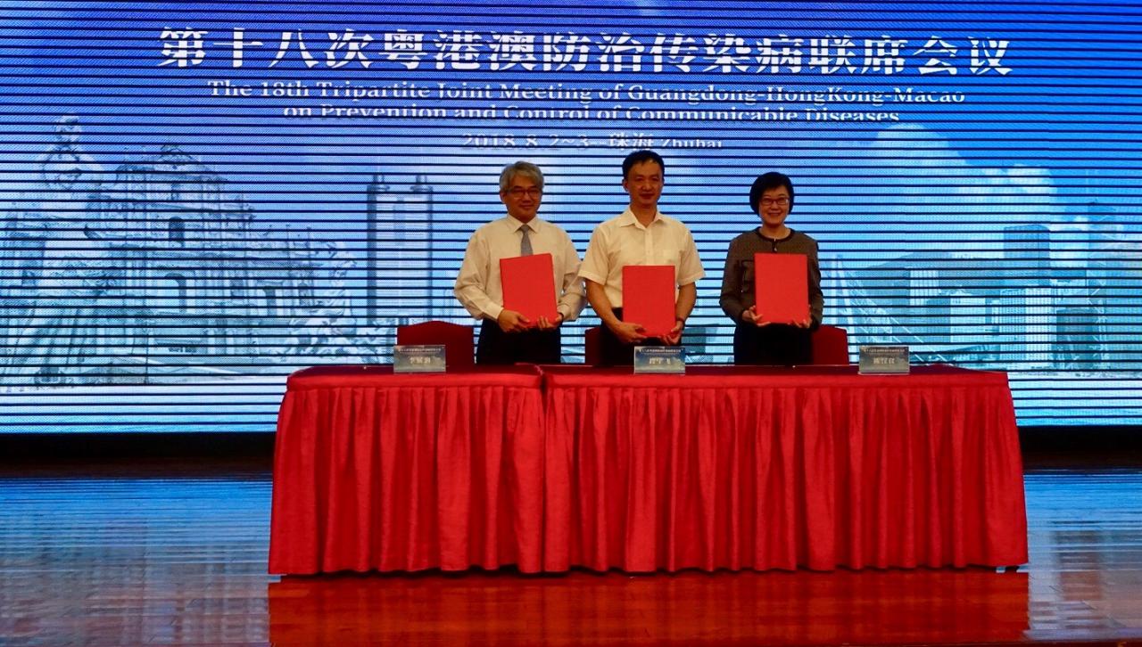 Para consolidar e reforçar o mecanismo de intercâmbio e cooperação na área da prevenção e tratamento de doenças infecciosas entre Guangdong, Hong Kong e Macau, bem como, melhorar a capacidade das três regiões em lutar contra as doenças infecciosas, os serviços de saúde da Província de Guangdong, Hong Kong e Macau efectuaram em Zhuhai, nos passado dia 2 e 3 de Agosto, a “18.ª Reunião Tripartida entre Guangdong-Hong Kong-Macau sobre a Prevenção e Tratamento de Doenças transmissíveis”, a ter lugar na Cidade de Zhuhai, que contou com a presença de cerca de 70 especialistas as 3 regiões - Macau, Hong Kong e da Província de Guangdong.