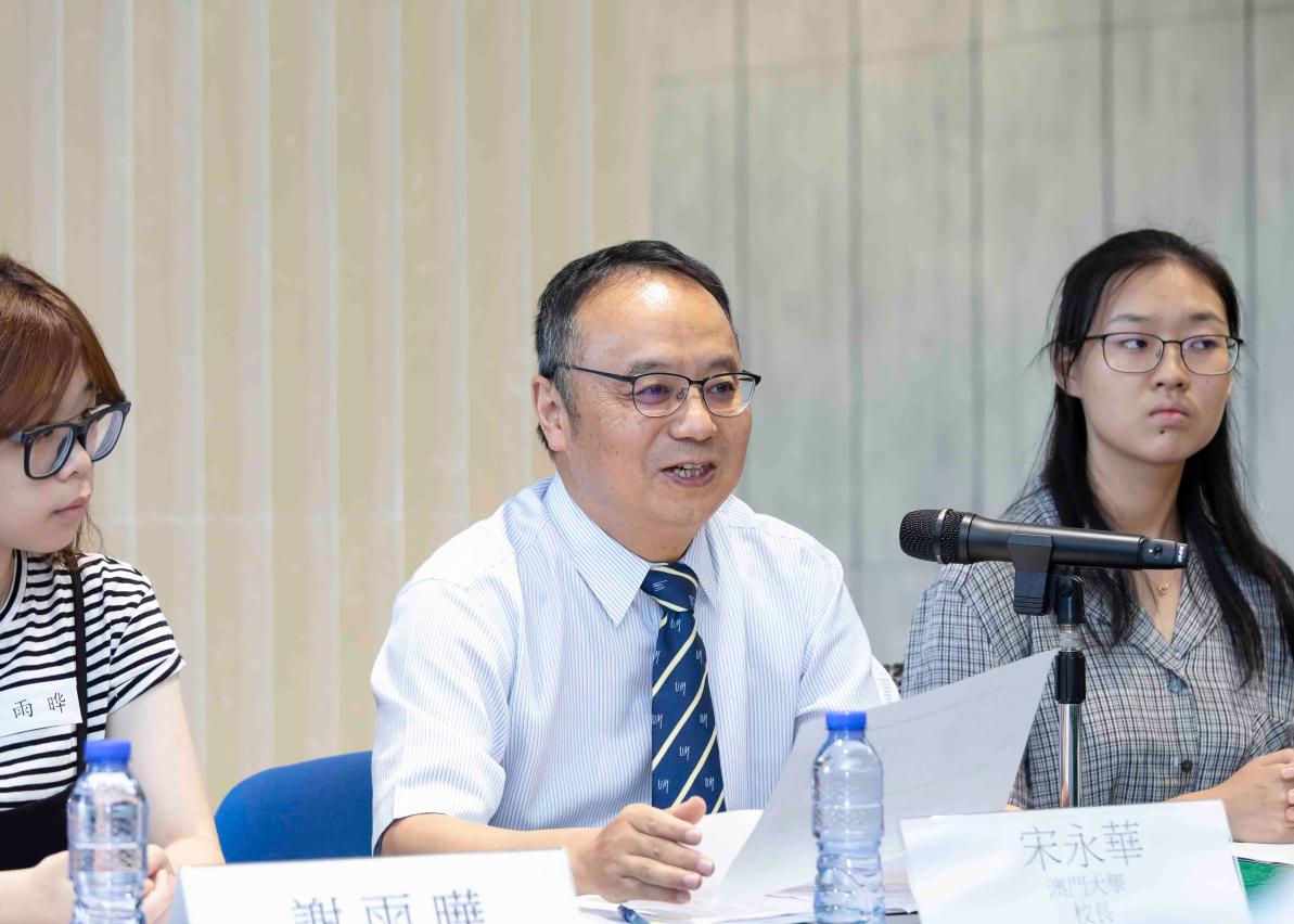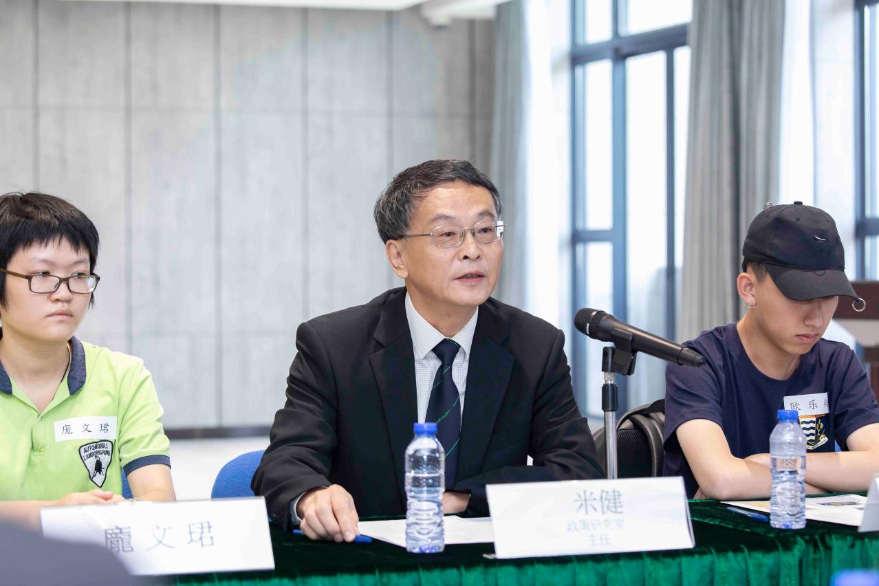 During the meeting, a PhD student from the Faculty of Business Administration shared his experiences of starting a business in the Greater Bay Area. He thanked UM for nurturing him and helping him find the right career path. A new student from the Department of Portuguese said that she loves the freedom in UM’s academic environment, which offers an opportunity for her to meet people from different countries and regions and develop interpersonal communication skills. Guests in the event included representatives of the Liaison Office of the Central People's Government, Education and Youth Affairs Bureau, and the Economic Bureau, as well as UM Institute of Collaborative Innovation Interim Director Jerome Yen, Dean of Students Paul Pang, Communications Office Director Katrina Cheong, and Global Affairs Office Director Cindy Lam.
