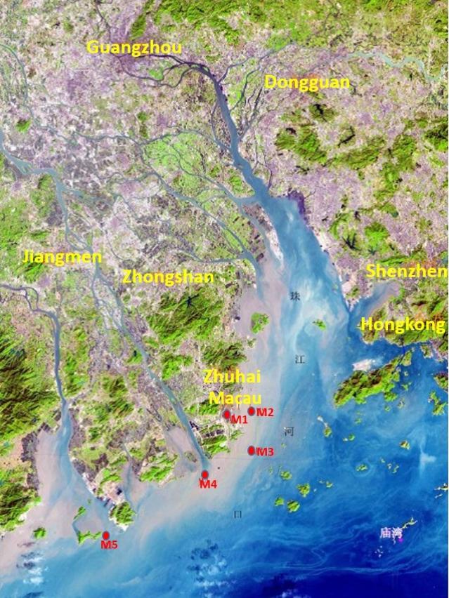 Na totalidade há cinco estações marítimas flutuantes colocadas na zona marítima próxima de Macau, que são, respectivamente, (M1) em baixo da Ponte Sai Van, (M2) na zona marítima Leste da Península de Macau, (M3) na fronteira marítima Sueste de Macau, (M4) na foz de “Mo Dao Men” e (M5) na fronteira marítima Sudoeste de Macau (na baía Huang Mao).