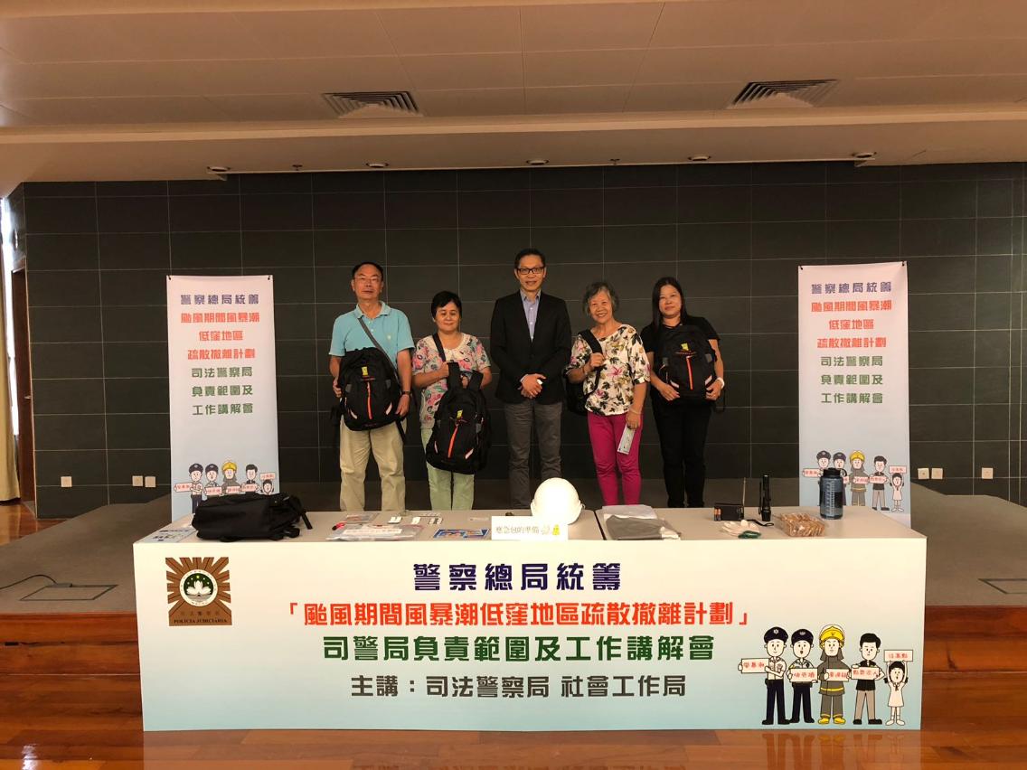 Com o objectivo de dar a conhecer aos cidadãos o plano de evacuação bem como reforçar a consciência da população para a necessidade de prevenção de desastres e riscos, em coordenação com os Serviços de Policia Unitários deu-se continuação ao trabalho sobre o “Plano de evacuação das zonas baixas em situações de Storm Surge durante a passagem de tufão” com a realização da sessão de esclarecimento. Na tarde do dia 1 de Setembro, a Polícia Judiciária, em conjunto com o Instituto de Acção Social, realizou uma sessão de esclarecimento sobre este plano, no Centro de Actividades do Complexo Municipal do Mercado de S. Lourenço. Foram apresentados aos participantes o objectivo e conteúdo do plano de evacuação, as medidas de evacuação, a preparação que os moradores devem fazer para a prevenção de desastres, bem como as informações sobre os centros de abrigo e locais de concentração ou de evacuação de emergência, de modo a que, em situações de Storm Surge durante a passagem de tufão, as pessoas possam seguir as indicações das entidades de protecção civil e retirarem-se das áreas indicadas de forma ordeira.