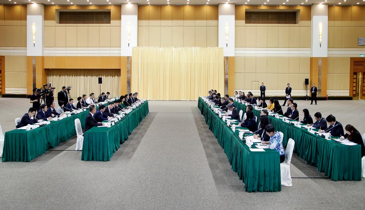 A reunião realizou-se, no fim da tarde, no Centro de Convenções Internacionais da Nave Desportiva dos Jogos da Ásia Oriental de Macau. Chui Sai On, o director do Gabinete de Ligação do Governo Popular Central na RAEM, Zheng Xiaosong, e a governadora da província de Guizhou, Chen Yiqin, lideraram, respectivamente, os representantes das três partes envolvidas.