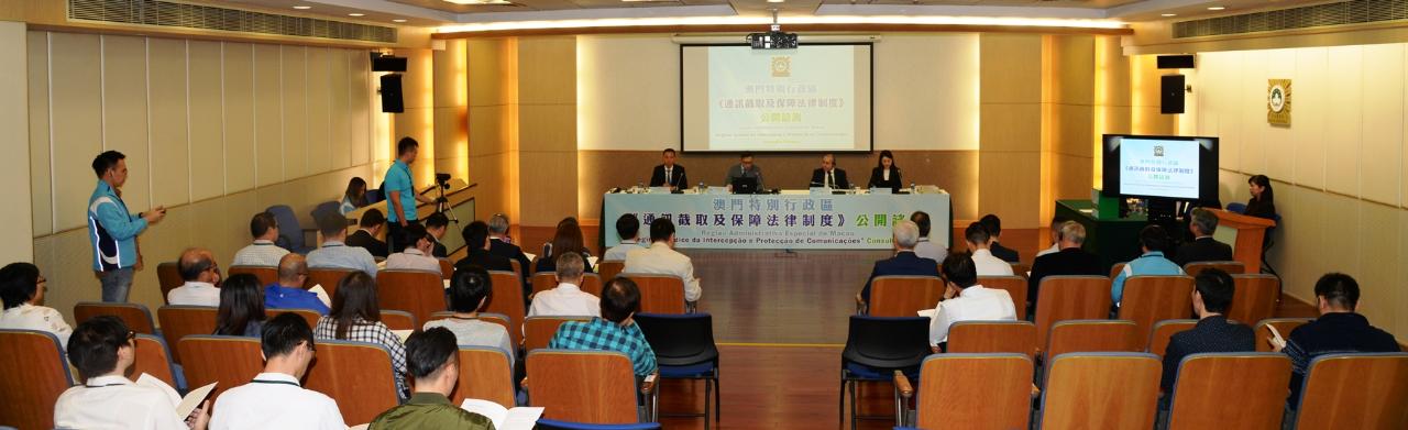 Durante a sessão de consulta, os representantes do Governo fizeram uma apresentação detalhada do conteúdo legislativo do Regime Jurídico da Intercepção e Protecção de Comunicações, houve uma troca interactiva e recolha de opiniões junto dos representantes dos sectores envolvidos. Todos os representantes presentes estiveram de acordo com a necessidade de constituir o Regime Jurídico da Intercepção e Protecção de Comunicações e apresentaram as suas opiniões e sugestões relativas à definição do prestador de serviços de comunicações em rede, às obrigações de colaboração e de conservação, à responsabilidade penal na violação das obrigações, ao montante de multa das sanções administrativas, aos tipos e prazo de registos de comunicações que devem ser conservados, período transitório após a entrada em vigor da legislação etc.
