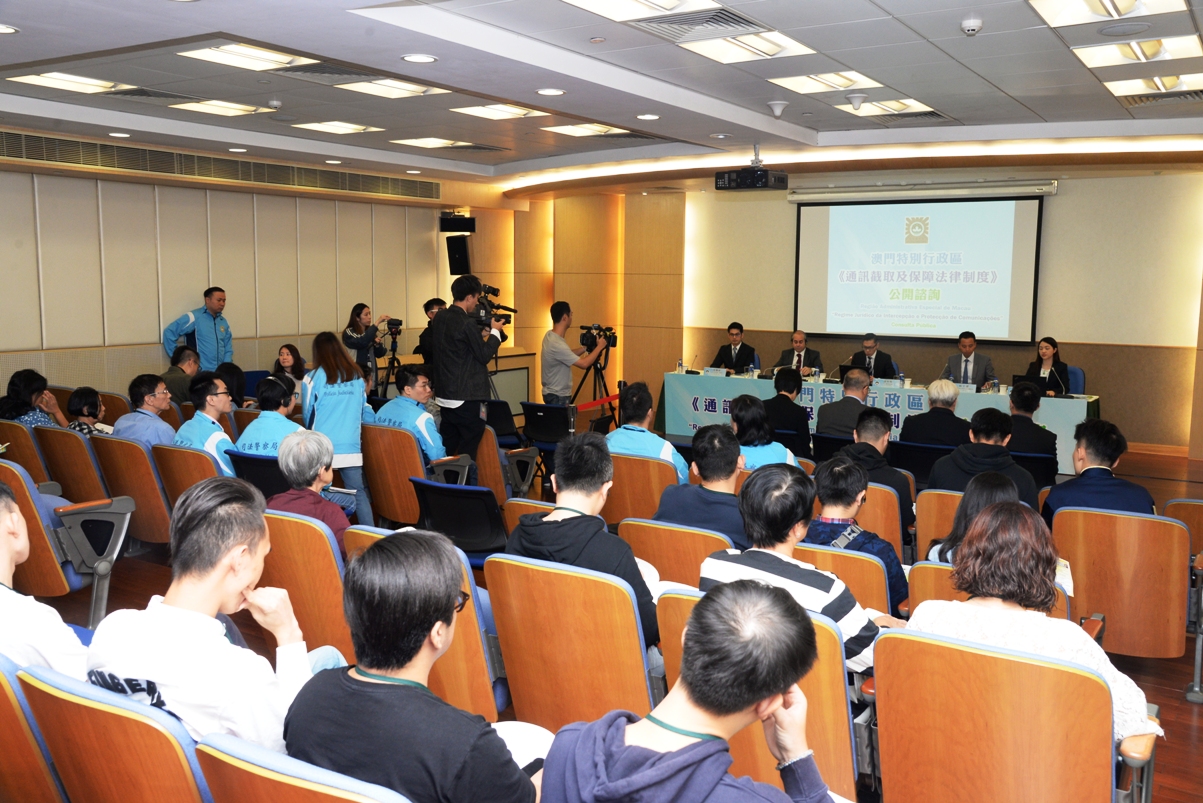 O Governo da RAEM realizou a 1.ª sessão de consulta pública destinada à população sobre o Regime Jurídico da Intercepção e Protecção de Comunicações, no dia 20 de Outubro, pelas 15H00, na sede da Polícia Judiciária. Mais de 80 cidadãos participaram nesta sessão de consulta, entre os quais, 11 pessoas expressaram as suas opiniões.