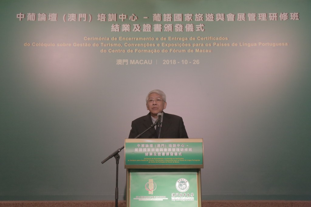 No dia 26 de Outubro, realiza-se a Cerimónia de Encerramento e de Entrega de Certificados do “Colóquio sobre Gestão do Turismo, Convenções e Exposições para os Países de Língua Portuguesa”, o qual foi organizado pelo Centro de Formação do Fórum de Macau em colaboração com a Universidade da Cidade de Macau.
