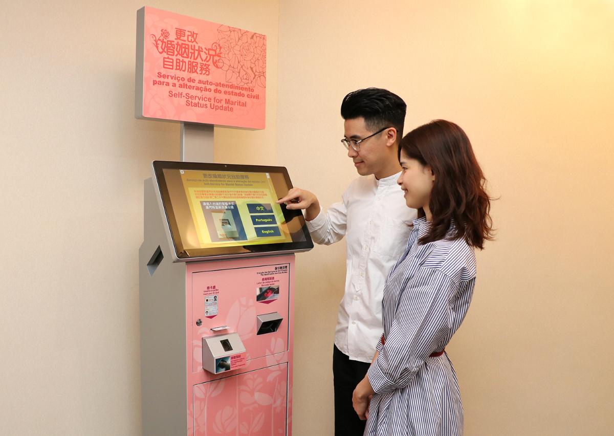 A Direcção dos Serviços de Identificação (DSI) e a Direcção dos Serviços de Assuntos de Justiça (DSAJ) colaboram, mais uma vez, no lançamento de medidas simplificadas para facilitar os cidadãos. A partir de hoje (dia 31 de Outubro), os residentes de Macau que preencham os requisitos podem proceder, de imediato, à alteração do estado civil constante do BIR após o registo de casamento, através dos quiosques instalados na Conservatória do Registo Civil (CRC), sem terem de se deslocar à DSI para tratar das respectivas formalidades.