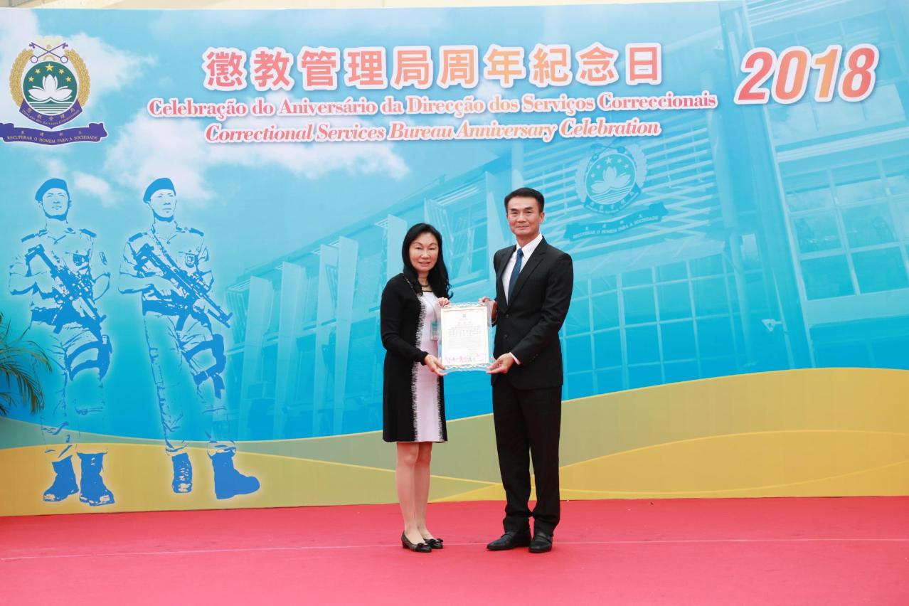 Foi realizada, no dia 5 de Dezembro, na Direcção dos Serviços Correccionais a Cerimónia de Celebração do Aniversário da DSC 2018, para rever e avaliar o trabalho do ano passado, fazendo um balanço sobre a eficácia dos serviços correccionais numa perspectiva para o desenvolvimento futuro. Aproveitou-se também esta oportunidade, para reforçar a comunicação e ligação com os outros serviços governamentais, serviços congéneres estrangeiros e diversos sectores da sociedade e mostrar à sociedade a mentalidade profissional dos agentes penitenciários, atribuindo louvores individuais e colectivos aos trabalhadores pelo desempenho excelente em diferentes posições no passado ano, motivando o moral e a solidariedade do pessoal. E, ao mesmo tempo, foram atribuídas pela DSC, cartas de agradecimentos aos empregadores generosos, agradecendo-lhes pela prestação de cuidado e atenção, no sentido de apoiar a reabilitação dos reclusos e jovens internados.