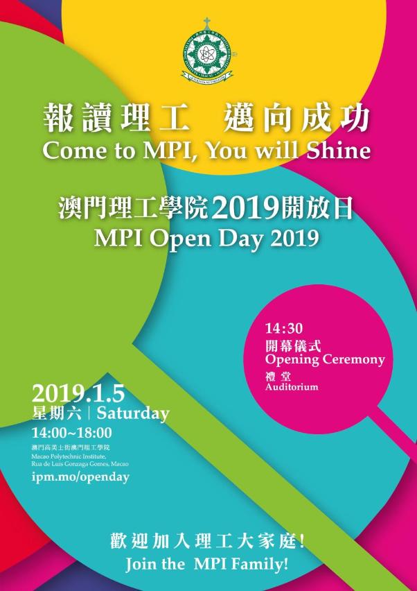 Ao Dia Aberto do IPM serão bem-vindos os finalistas do Ensino Secundário, os encarregados de educação e o público em geral. A candidatura aos cursos do IPM pode ser realizada na Divisão de Admissão, Matrícula e Inscrição de Alunos. O período de candidatura termina no dia 18 de Janeiro de 2019, até essa data, os interessados podem deslocar-se à sede do IPM para visitar a exposição dos cursos no Edifício Chi Un e as exposições temáticas na biblioteca do Edifício Wui Chi.