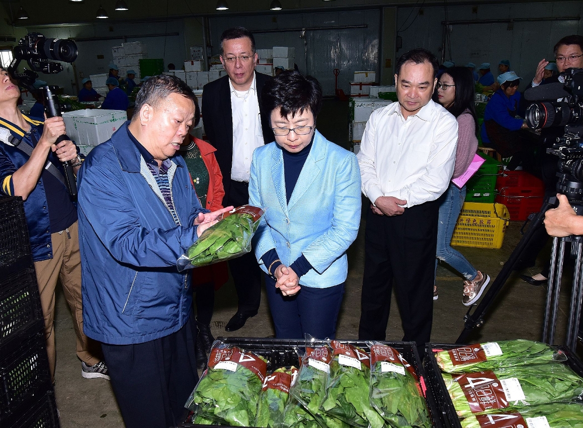 Posteriormente, a delegação foi ao Distrito Nan Sha da Cidade de Guangzhou e visitou uma base de grande dimensão para fornecimento de verduras a Hong Kong e Macau, e uma base de criação específica de peixes em água do mar e em água doce, a fim de conhecer a gestão do cultivo, transformação, embalagem, e distribuição de vegetais de alta qualidade, e ainda o sistema inteligente do controlo de segurança criado pelas tecnologias modernas de aquicultura, incluindo as vertentes de reajuste da qualidade da água, selecção de crias, lançamento de ração, prevenção e controlo de doenças e outros elos da cadeia de produção e comercialização.